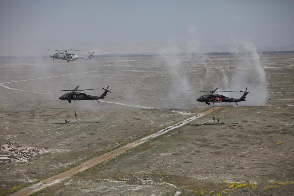 Daha sonra havalanan helikopter, yaralı askeri kurtarmak için alana geldi. Hava unsurlarının alana inmesinin ardından personel, çevre güvenlik önlemlerini alarak yaralı askeri helikoptere taşıdı. Helikopterlerin havalanması sırasında, düşman kuvvetlerinin piyade askerlerince ateş açılması sonucu helikopterler top atışıyla karşılık verdi. Askeri personelin düşman tehlikesinden kurtarılmasının ardından hava unsurlarınca, belirlenen hedefler başarıyla vuruldu. Daha sonra tatbikata katılan ülkeler kendi bayraklarını açtı.
