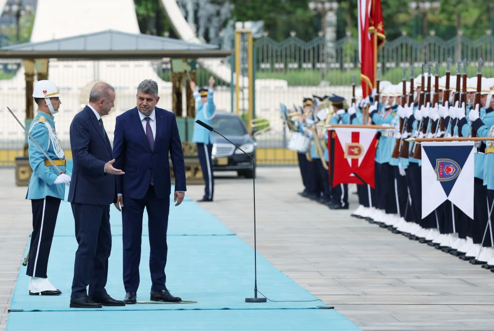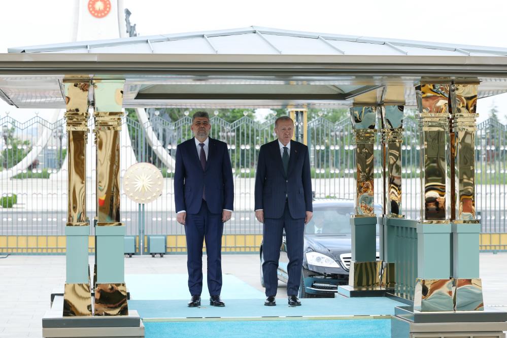 Cumhurbaşkanı Recep Tayyip Erdoğan, Romanya Başbakanı Marcel Ciolacu’yu resmi törenle karşıladı.