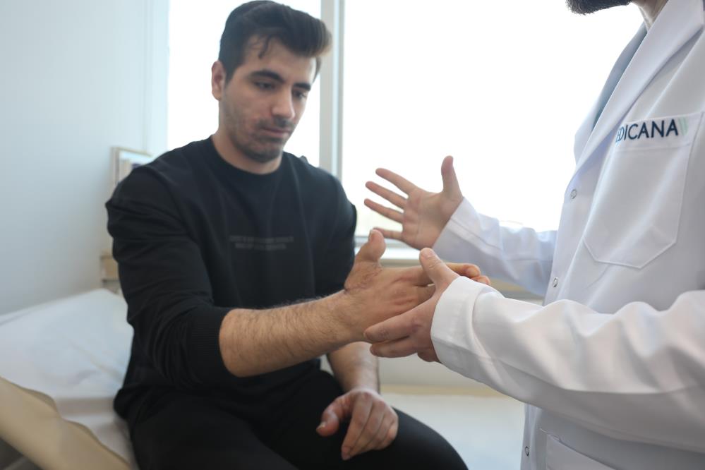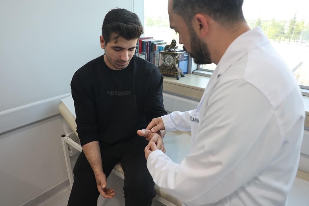 Ameliyat sonrası Enes Çelik’in el fonksiyonlarının verimli olduğunu kaydeden Operatör Doktor Harun Kütahya, “İş kazalarında el yaralanmaları oldukça fazla. Bazen uzuv kayıpları meydana gelebiliyor. Elin fonksiyonlarını tekrar kazandırmak için eğer mümkünse kopan uzuvlar tekrar replantasyon (vücudun kopan bir parçasının işlevini yeniden kazandırmak amacıyla tüm yapılar ile beraber yeniden onarılması) dediğimiz işlemle yerine dikilebiliyor. Fakat bunların mümkün olmadığı durumlarda fonksiyonları tekrar kazandırabilmek, hastayı hem gündelik hem de iş hayatına döndürebilmek için bazen organ nakilleri gibi ayaktan ele gibi nakillerle işlem yapmak gerekebiliyor. Bizim hastamız da 2023 yılı Eylül ayında bir iş kazası sonrasında her iki elde başparmağın kopmasıyla bize başvurdu. Peş peşe olan süreçte her iki ayağından her iki eline başparmak nakil işlemlerini gerçekleştirdik. Yara iyileşmeleri, kemik kaynamalarının ardından fizik tedaviye başladık. Daha sonrasında ise yaklaşık 6 aylık dönemde ellerinde ciddi fonksiyonları kazandık. Gündelik işlerini yapabilir aşamasına getirebildik. Bundan sonraki süreçte ise bu fonksiyonları daha da ilerletip özellikle iş kazanımına da artık döndürmeyi planlıyoruz” diye konuştu.