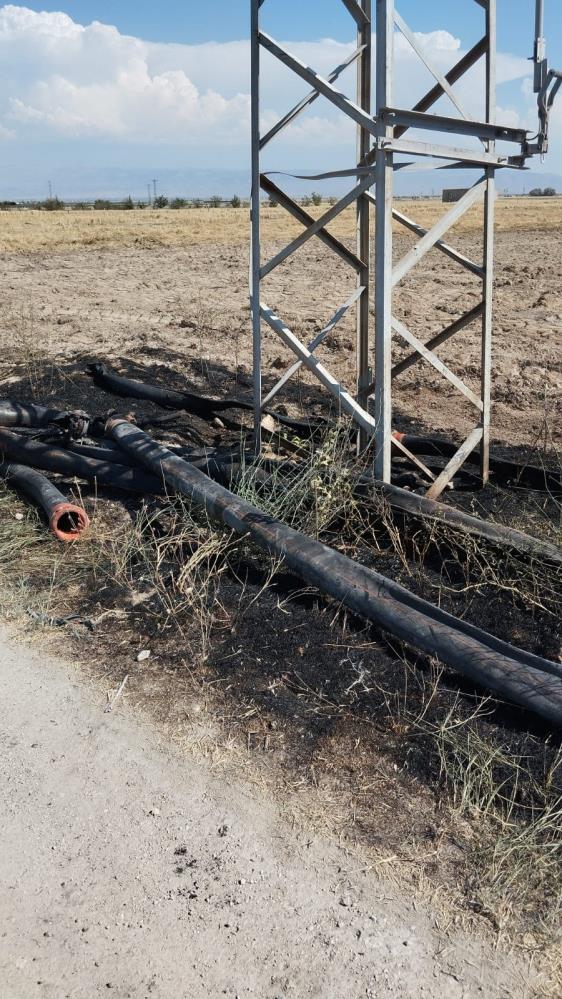 Edinilen bilgiye göre, ilçeye bağlı Akören Mahallesinde kuşların yüksek gerilim hattına dokunması sonucu çıkan yangın, buğday ekili tarlaya sıçradı. İhbar üzerine yangın mahalline itfaiye ekipleri sevk edildi. Bu sırada yükselen dumanı fark eden mahalle sakinleri ve arazide çalışanlar traktör ve iş makineleriyle buğday tarlasını saran alevlerin önünü kesmeye ve çevre arazilere sıçramasını engellemeye çalıştı. İtfaiye ekiplerinin çalışmasıyla söndürülen yangında, 15 dekar buğday ekili alan ve çok sayıda sulama borusu da yandı.