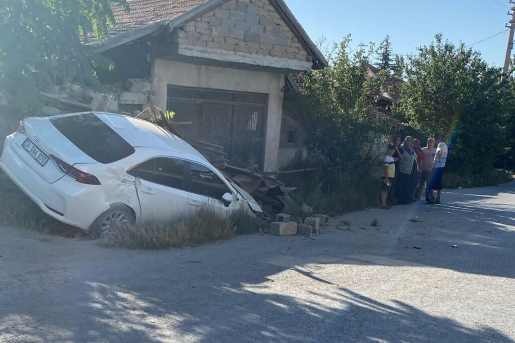 Otomobilin çarptığı evin duvarı yıkılırken, kazada yaralıların olduğu bildirildi.