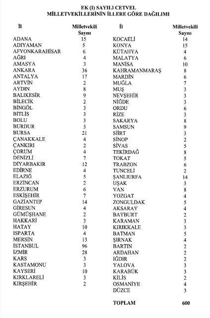 Bursa’nın çıkaracağı milletvekili sayısı 20’den 21’e, Eskişehir’in 6’dan 7’ye, Tunceli ve Bayburt’un çıkaracağı milletvekili sayısı da 1’den 2’ye çıkarıldı.