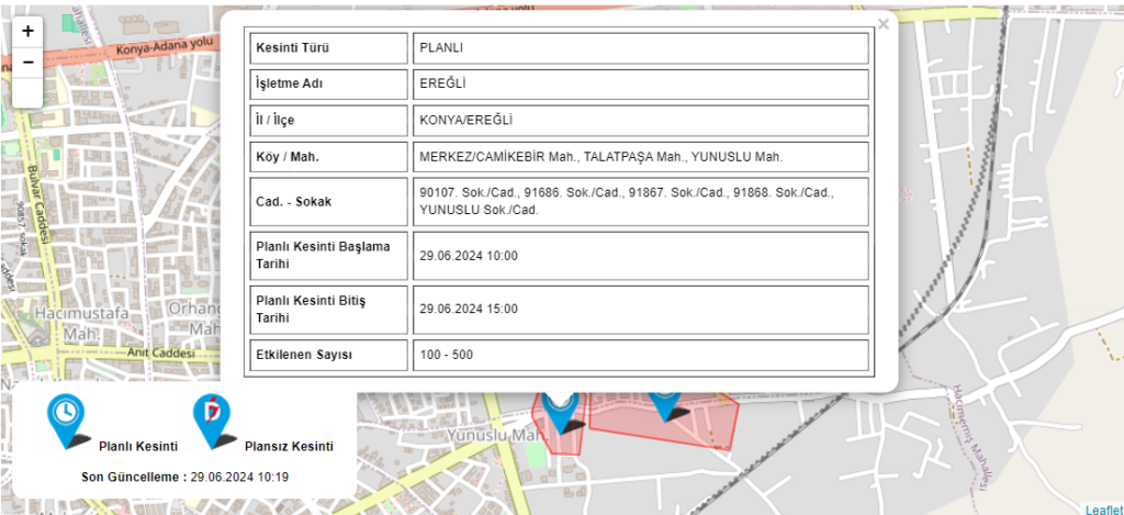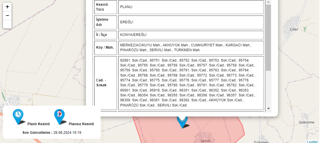 MEDAŞ tarafından alınan bilgilere göre 29 Haziran Cumartesi günü Acıkuyu Mahallesi, Akhüyük Mahallesi, Cumhuriyet Mahallesi, Kargacı Mahallesi, Pınarözü Mahallesi, Servili Mahallesi, Türkmen Mahallesi, Camikebir Mahallesi, Talatpaşa Mahallesi ve Yunuslu Mahallelerinde aşağıda belirtilen saatlerde ve belirtilen cadde ile sokaklarda elektrik kesintisi uygulanacak.