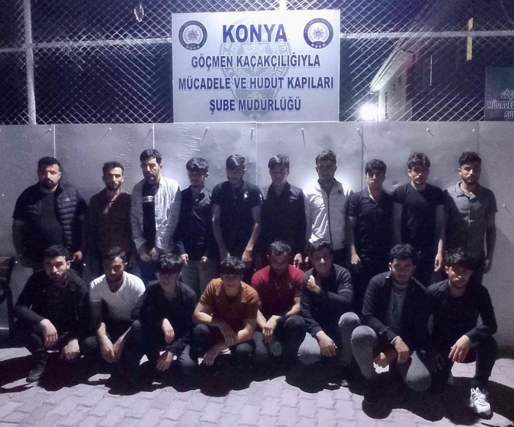 Konya Emniyet Müdürlüğü ekiplerince göçmen kaçakçılığına yönelik yapılan çalışmalar çerçevesinde baskın yapılan bir evden 17 kaçak göçmen çıktı.