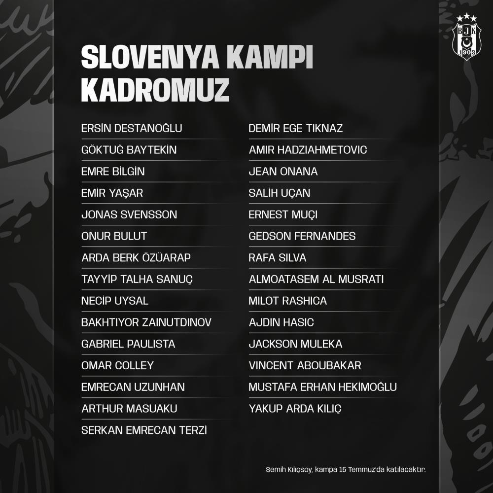 Yeni sezon hazırlıklarını Slovenya’nın Maribor kentinde sürdürecek olan Beşiktaş’ın kamp kadrosu belli oldu.