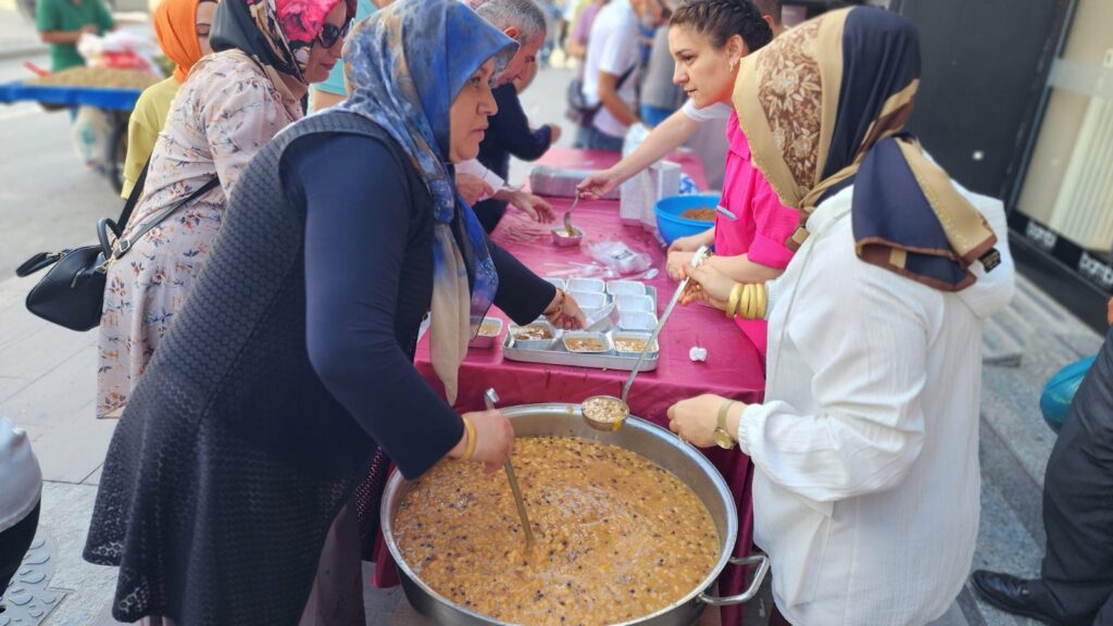 Açıklamaların ardından Kaymakam Oğuz Cem Murat, Ak Parti Ereğli İlçe Başkanı İbrahim Erol ve Mahirbey Mobilya sahibi Mahir Kaymak vatandaşlara aşure ikramında bulundu.