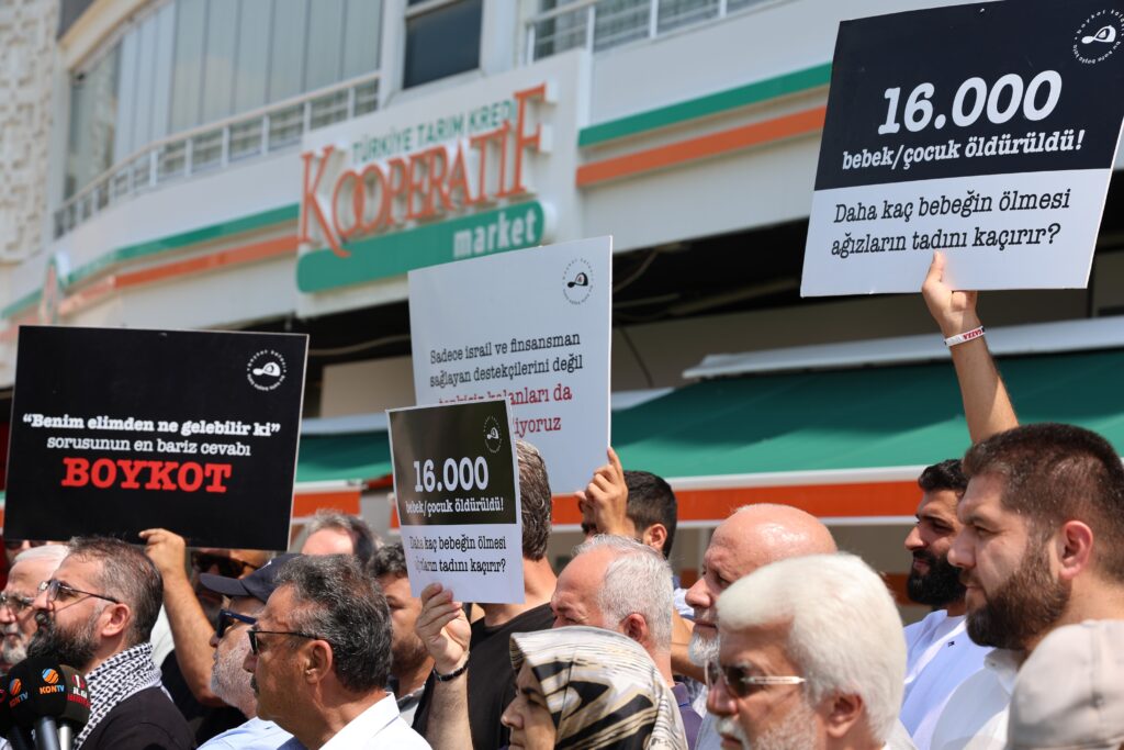 Konya Sivil Toplum Kuruluşları Platformu, Tarım Kredi Kooperatif Markete tepki göstererek, boykot ürünlerinin satılmaması çağrısında bulundu.