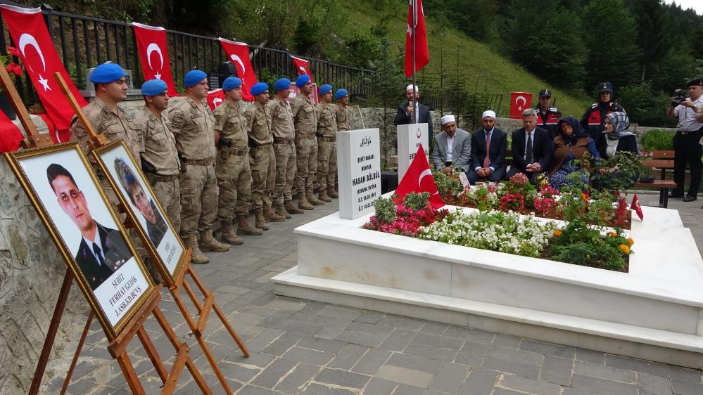 Trabzon Valisi Aziz Yıldırım ise ‘biz bir ölür bin diriliriz’ diye sözlerine başlayarak, “Bu şekilde olan ölüm bizim için bayramdır. Bu bir yok olma değil, var olmanın bir başlangıcıdır. Biz bunu böyle biliyor, böyle inanıyor ve bizden sonrakilere de böyle aktarıyoruz. Bugünün hatırasında iki tane şehidimiz ile baş başayız. Ferhat Gedik şehidimize de, ailesine, bu vesileyle silah arkadaşlarına başsağlığı diliyorum. Eren Bülbül’ümüz hala 15 yaşında. O artık cennete uçan bir melek. Bizi üzen onun yokluğu. Ailesini üzen onun fiziken yokluğu ancak biz inanıyoruz ki birlikteyiz. O da burada, bizimle” diye konuştu.