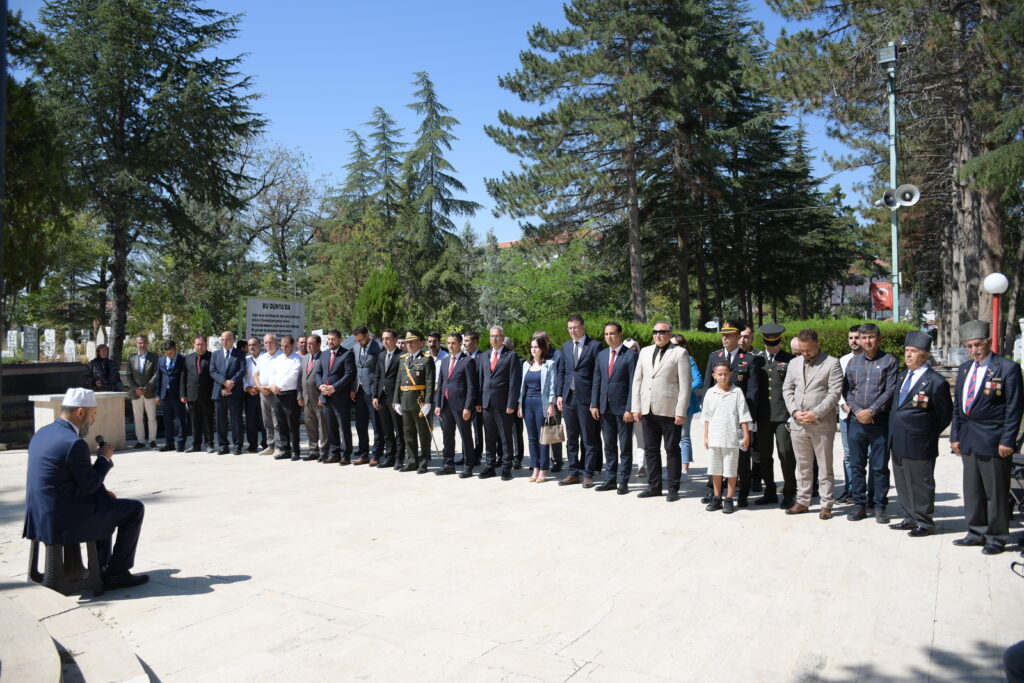 Kaymakamlık makamında gerçekleştirilen tebrik kabulünün ardından Meydanbaşı Mezarlığında bulunan şehitliğe protokol üyeleri tarafından ziyaret gerçekleştirildi. Okunan duaların ardından protokol üyeleri şehit mezarlarına karanfil bıraktı.