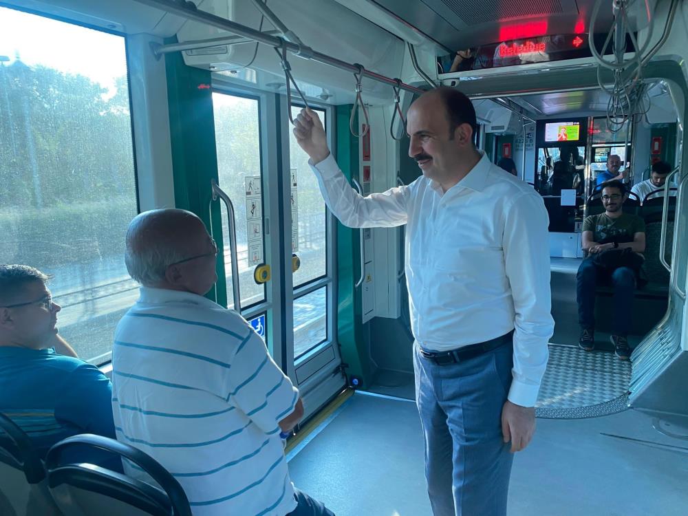 Konya Büyükşehir Belediye Başkanı Uğur İbrahim Altay, şehir merkezi ile Selçuk Üniversitesi arasında çalışan tramvayda vatandaşlarla sohbet etti. Konyalıların toplu ulaşımla ilgili önerilerini ve görüşlerini dinleyen Başkan Altay, Konya Büyükşehir Belediyesi’nin akıllı ulaşım sistemleriyle Türkiye’ye örnek olduğunu söyledi. Başkan Altay, ulaşım alanında şehre kazandırılan yatırımlar ve alınan yeni araçlarla toplu ulaşımı daha da iyileştirmek için yoğun şekilde çalışmaya devam ettiklerini belirterek, “Tramvayda hemşehrilerimizle birlikte seyahat ederek onların Konya ve toplu ulaşımla ilgili fikirlerini dinledik. Yeni otobüsler, akıllı ulaşım sistemi, en ekonomik fiyat ve optimum hat güzergahı ile ulaşımda Türkiye’ye örnek oluyoruz. Günde ortalama 495 bin yolcu taşıyoruz ve biniş ücretlerini sübvanse ederek aile ekonomisine katlı sağlıyoruz. ‘Konya Modeli Toplu Ulaşım’ başlı başına bir başarı öyküsü. Biz de bu başarıyı en üst seviyeye çıkararak Konya’mızı Türkiye’nin ve dünyanın toplu ulaşımı gelişmiş şehirlerinden birisi yapmakta kararlıyız” dedi.