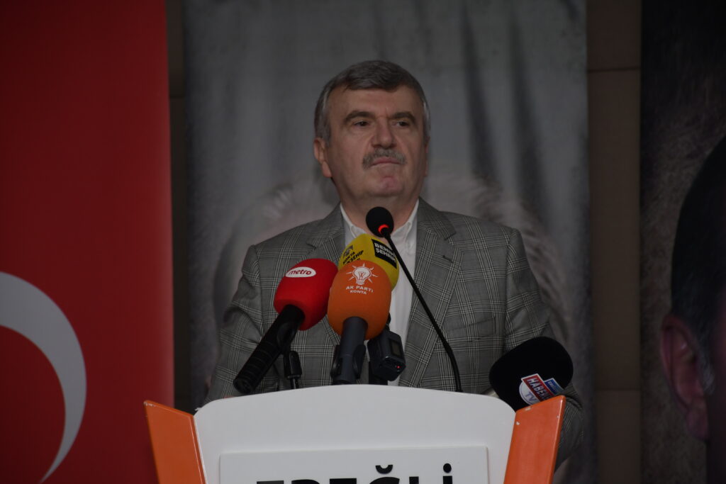 Konya Büyükşehir Belediyesi tarafından Ereğli’ye kazandırılan projelerden bahseden Konya Büyükşehir Belediye Başkanı Uğur İbrahim Altay; “Bugün Ereğli’ye yakışır bir şekilde kongremizi gerçekleştirmiş bulunuyoruz. Ereğli merkez dışındaki en büyük ilçemiz. Yeni Büyükşehir Yasasıyla birlikte önemli hizmetler alan bir ilçe oldu. Herkes Büyükşehir Yasasının en güzel olarak uygulandığı şehrin Konya olduğunun farkında. Şöyle bir geriye dönüp baksak Ereğli’de bugün prestij eser diye ortaya konulan eserlerin neredeyse tamamı Konya Büyükşehir Belediyesi’nin emeği olan işler. 2014’de başladığımız yolculukta altyapıyla ilgili olarak önemli çalışmalar halledildi. Eksikler giderildi mi? Giderildi. Hala devam ediyor mu? Ediyor. Biz çalışmaya ve hizmet etmeye devam edeceğiz.