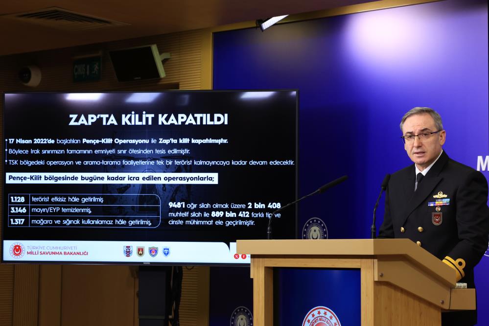 “Pençe-Kilit bölgesinde bugüne kadar icra edilen operasyonlar ve hava harekâtları neticesinde toplam bin 128 terörist etkisiz hâle getirilmiş, bölgede teröristlerin döşediği 3 bin 146 mayın/EYP temizlenmiş, bin 317 mağara ve sığınak kullanılamaz hâle getirilmiş, ayrıca 948’i ağır silah olmak üzere 2 bin 408 muhtelif silah ile 900 bine yakın farklı tip ve cinste mühimmat ele geçirilmiştir.”