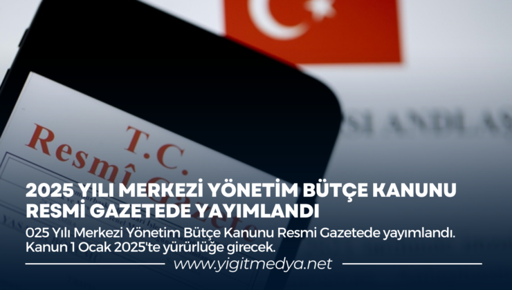 2025 Yılı Merkezi Yönetim Bütçe Kanunu Resmi Gazetede yayımlandı. Kanun 1 Ocak 2025’te yürürlüğe girecek.