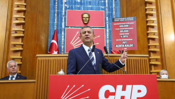 6 Şubat Depremlerinin yıl dönümünde 90 milletvekili ile deprem bölgesinde olacaklarını ifade eden Özel, “Cumhuriyet Halk Partisi grubu olarak, 11 ilde toplam 90 milletvekilimizle birlikte önümüzdeki üç günde depremde yıkılan neresi varsa, hasar gören tüm illerde, ilçelerde var gücümüzle olmaya, onlara iki yıl önce olduğu gibi iki yıl sonra da dokunmaya, onları dinlemeye, anlamaya, onların sorunlarını yeniden Meclis’e taşımaya, onların sorunlarını yeniden kamuoyunda görünür kılmaya deprem bölgesine gidiyoruz. 8-10 Şubat tarihlerinde Erdoğan yaptığı açıklamada Yani depremden iki gün ve dört gün sonra, 650 bin konutun yıkıldığını, devletin güçlü olduğunu ve bir yıl içinde tüm konutların yapılarak, vatandaşlara teslim edileceğinin sözünü vermişti. Devamında 15 Mart tarihli grup konuşmasında da ilk geri dönüşü yapıp, 650 bin yıkılan konuttan 319 binini bir yıl içinde teslim edeceğinin sözünü vermiş, bu sözle seçimlere gitmiş, bütün Türkiye’de günde defalarca kez yaptığı seçim konuşmalarında bir yıl içinde herkesin evlerine kavuşacağını söylemişti. Depremin birinci yılı bittiğinde çıktık ve açıkladık. Teslim edilen konut sayısı ne 650 bin, ne 319 bin. Sadece 18 bin 19’du. Yani söz verilenin yüzde 2,7’si” diye konuştu.