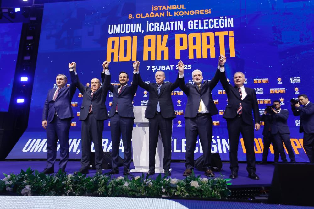 AK Parti İstanbul 8. Olağan İl Kongresi Cumhurbaşkanı Recep Tayyip Erdoğan’ın katılımıyla gerçekleşti. Zeytinburnu Kazlıçeşme’deki Basketbol Gelişim Merkezi’ndeki kongrede konuşmasına kongreye katılanları selamlayarak konuşmasına başlayan Cumhurbaşkanı Erdoğan, “Kıymetli yol ve dava arkadaşlarım, biliyorsunuz bugün İstanbul Teşkilatımızda bayrak değişimi yaşanıyor. 4 yıldır İstanbul İl Başkanlığı görevini şanla, şerefle, konumunun getirdiği sorumluluk bilinciyle yürüten ve bugün nöbeti devreden Osman Nuri Kabaktepe’ye, partim ve teşkilatım adına teşekkür ediyorum. Osman Nuri kardeşimle birlikte farklı kademelerde görev yapmış yol ve dava arkadaşlarımıza da takdir ve tebriklerimi iletiyorum. Gençler, unutmayın 2028’den sonra yeni bir İstanbul, yeni bir Türkiye inşa edeceğiz. Bugünden itibaren AK Parti İstanbul İl Başkanlığı vazifesini üstlenecek olan Abdullah Özdemir kardeşime de Rabbim’den üstün hizmetler, gayretler ve başarılar niyaz ediyorum. Bugün aramızda olmayan, dünya defterini kapatıp, beka alemine göç etmiş tüm kardeşlerimizi, büyüklerimizi, yol arkadaşlarımızı rahmetle şükranla yad ediyorum” dedi.