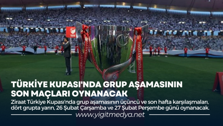 Ziraat Türkiye Kupası’nda grup aşamasının üçüncü ve son hafta karşılaşmaları, dört grupta yarın, 26 Şubat Çarşamba ve 27 Şubat Perşembe günü oynanacak.
