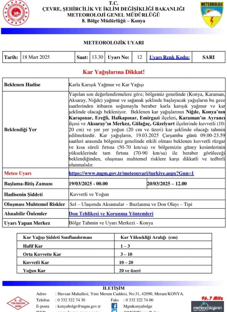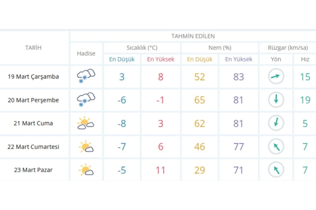 19 Mart Çarşamba : 8°C, fırtına ve kar yağışlı