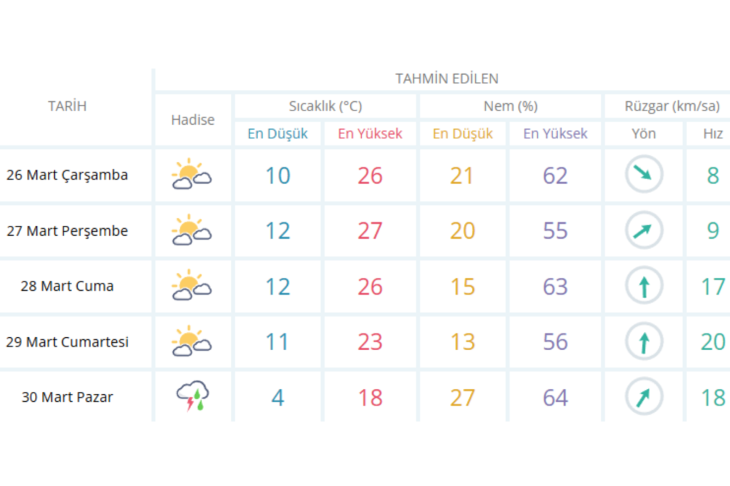 26 Mart Çarşamba : 26°C, parçalı bulutlu