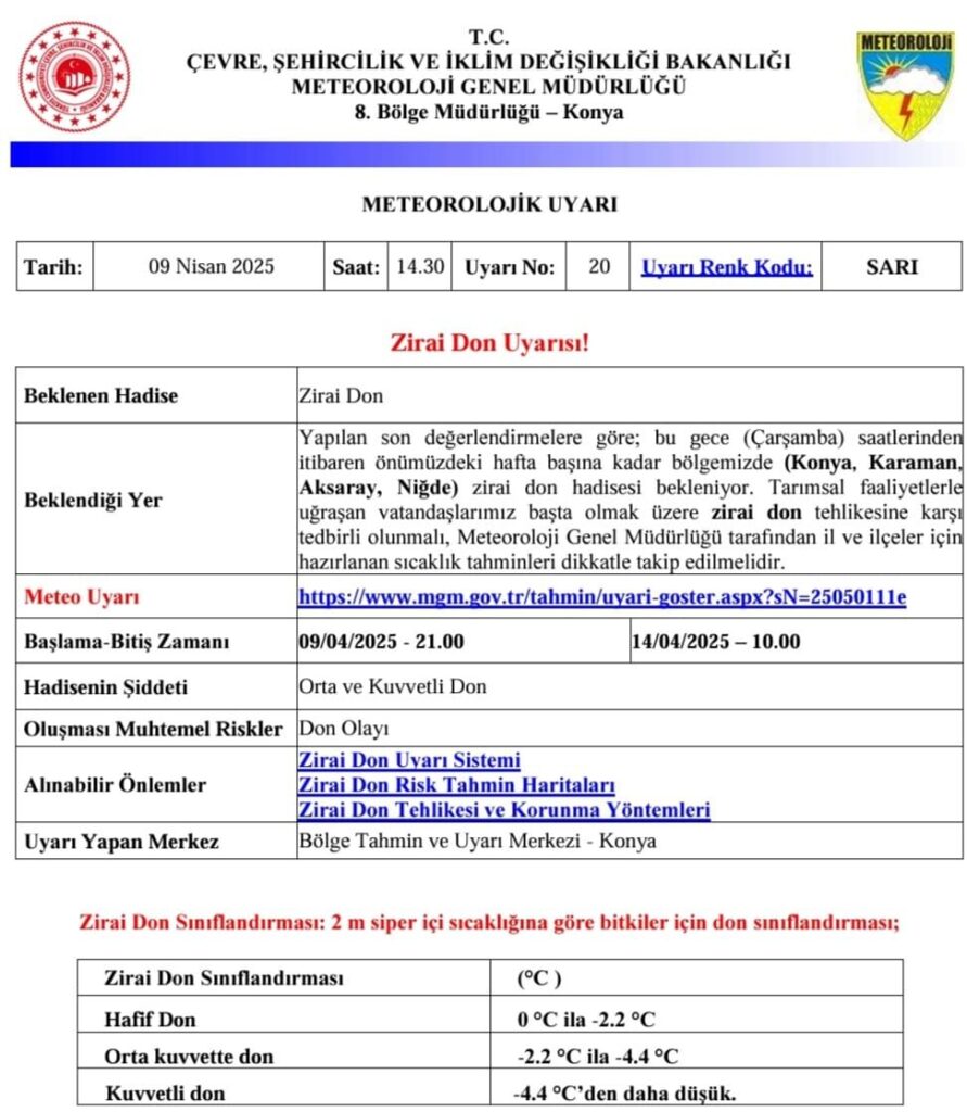 ZİRAİ DON VE KAR YAĞIŞI BEKLENİYOR