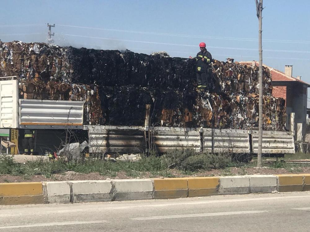 Ereğli’de hurda ve kağıt taşıyan tırın dorsesinde çıkan yangın paniğe neden oldu.