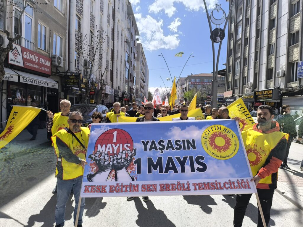 Ereğli’de 1 Mayıs Emek ve Dayanışma Günü, yüzlerce kişinin katılımıyla kutlandı. Eğitim-Sen’in öncülüğünde düzenlenen program sabah saatlerinde İstasyon Caddesi’nde başladı.