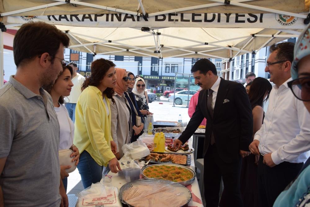 Karapınar Özel Eğitim Uygulama Okulu tarafından Anıt Meydanı’nda düzenlenen hayır panayırında, özel ihtiyaçlı öğrencilerin eğitimine destek sağlamak ve toplumsal farkındalık oluşturmak amacıyla okul öğretmenleri ve öğrencileri tarafından hazırlanan çeşitli el emeği ürünler sergilendi. Vatandaşların yoğun ilgi gösterdiği etkinlikte, öğrencilerin el becerileri ve üretkenliği takdir topladı. Kaymakam Şenol Öztürk etkinlikte yaptığı konuşmada, özel eğitim öğrencilerinin her türlü desteği hak ettiğini belirterek, bu tür organizasyonların toplumun her kesiminde farkındalık oluşturduğunu vurguladı. Kaymakam Öztürk, stantları tek tek gezerek öğrencilerle ve öğretmenlerle sohbet etti, emeklerinden dolayı teşekkür etti.