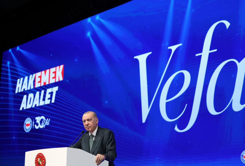 Bölgede ve dünyada olup bitenleri yakından takip ettiklerini aktaran Erdoğan, “Türkiye olarak bir yandan toplam faturası 100 milyar doları aşan 6 Şubat depremlerinin yaralarını sarmak için mücadele ediyor. Diğer yandan da bölgemizdeki çatışmaları ve krizleri suhuletle yönetmeye çalışıyoruz. Üç buçuk yılını tamamlayan Rusya Ukrayna Savaşı’nın ülkemize sirayet etmesine izin vermedik. 7 Ekim 2023’ten beri devam eden Gazze Soykırımı’nda İsrail’e karşı en net duruşu sergileyen ülkelerden biri olduk. Soykırımcı İsrail ile tüm ticari işlemleri durdurarak toplamda 9 milyar doları bulan bir rakamdan sarfı nazar ettik” ifadelerini kullandı.
