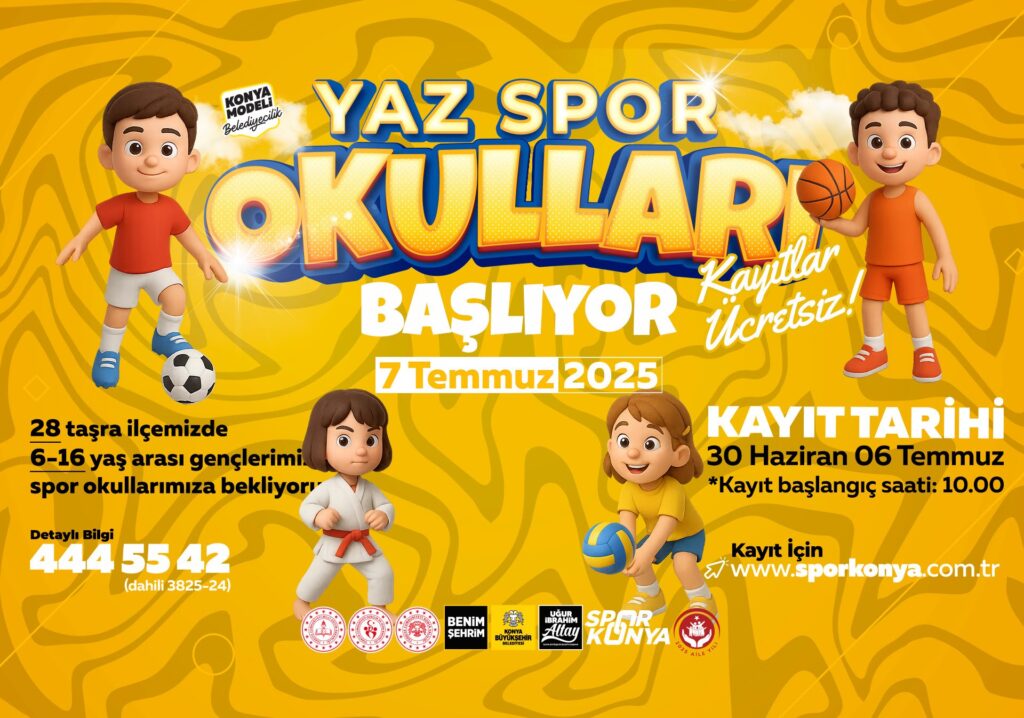 Bu yaz, Konya’nın dört bir yanında yüzlerce çocuk hem sporla tanışacak hem de yaz tatilini sağlıklı, eğlenceli ve verimli geçirecek. Belediye, 24 farklı branşta sunulacak spor eğitimlerinin tamamen ücretsiz olduğunu duyurdu. Kayıtlar için son tarih 6 Temmuz, eğitimlerin başlangıç günü ise 7 Temmuz olarak açıklandı.