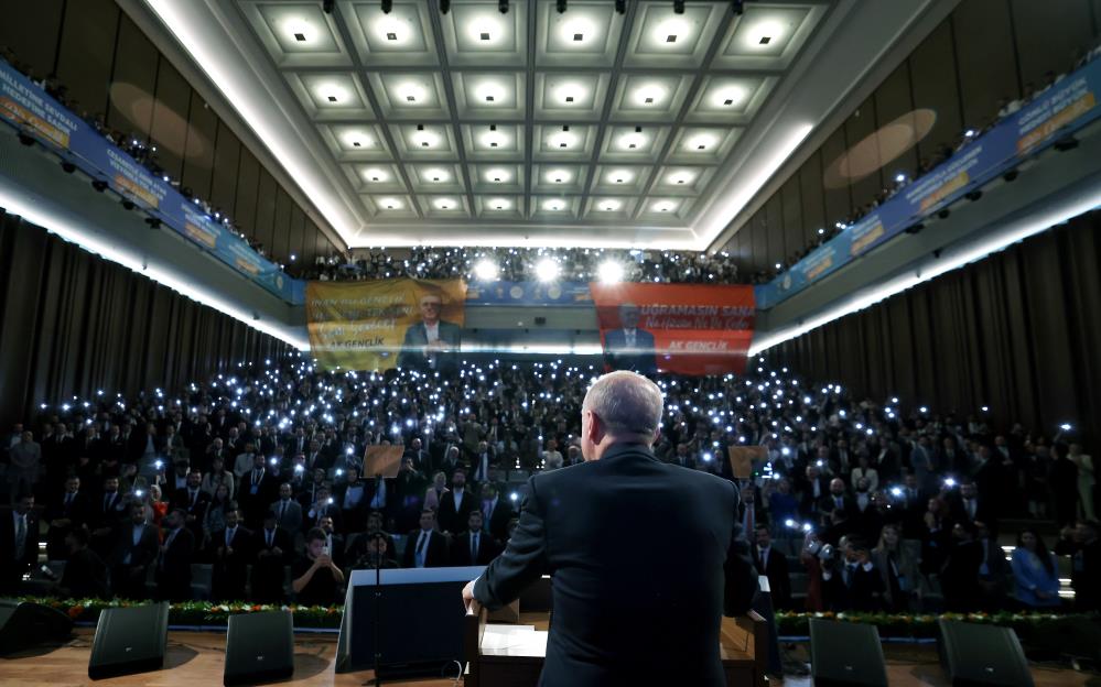 Gençlere seslenen Cumhurbaşkanı Erdoğan, “Siz bizim aşkla toprağa diktiğimiz unutmayın fidanlarımızsınız. Siz sadece bizim değil, aynı zamanda dualarında Türkiye’yi unutmayan milyonlarca mazlumun da güven kaynağısınız. Ben bu gençliği karşımda görüyorum. Sizin ışık saçan gözlerinizde Hoca Ahmet Yesevi’nin ilmini, Yunus Emre’nin muhabbet dilini, Ahi Evran’ın mücadeleci ruhunu, Hazreti Mevlana’nın derinliğini, Hacı Bayramı Veli’nin irfanını, Hacı Bektaşi Veli’nin hoşgörüsünü, İdris Bitlisi’nin kardeşlik şuurunu, Fakih Teyran’ın halen gönülleri mamur eden engin hikmetini görüyorum. Şunun da idrakinde olmanızı çok ama çok önemsiyorum. Sizin heyecanınızı paylaşmak, sizinle yol yürümek bu kutlu davada size yoldaşlık etmek şahsım için büyük bir iftihar vesilesidir. Genç arkadaşlarla aynı ufka birlikte koşmaktan kıvanç duyuyorum. AK gençliğin yüzümüzü kara çıkarmayacağına tüm kalbimle inanıyorum. Ben sizlere güveniyorum. Milletin emanetine sahip çıkacağınıza bizden teslim alacağınız sancağı daha da yücelteceğinize yürekten inanıyorum” şeklinde konuştu.
