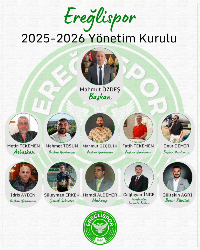 Ereğlispor’un 2025-2026 sezonu yönetim kurulu açıklandı. Yeşil-beyazlı kulüp, yeni dönemde birlik ve beraberlik içerisinde şehrin futboluna yön vermeyi hedefliyor.