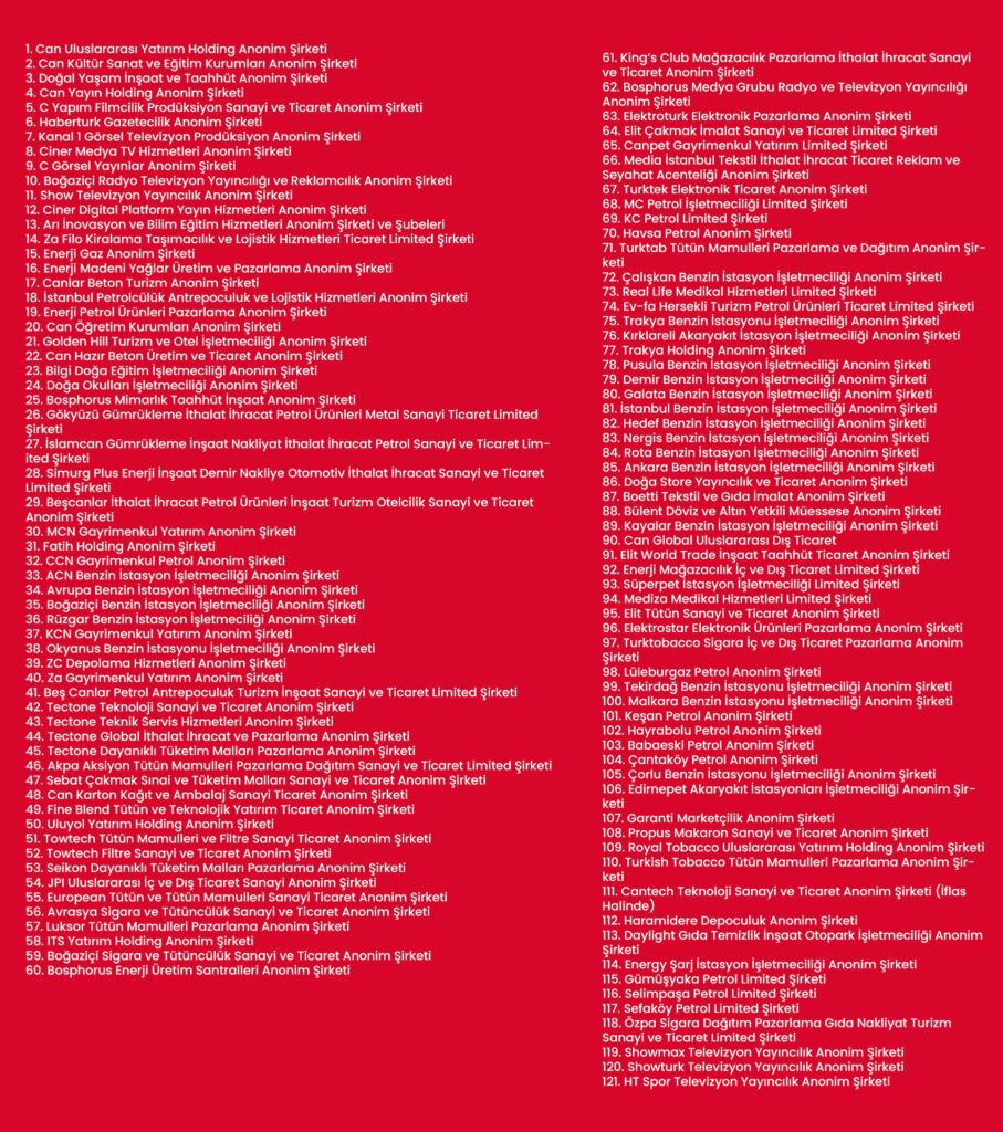 Türkiye gündemine damga vuran operasyon kapsamında Can Holding ve bağlı 121 şirkete el konuldu. Holding bünyesindeki Habertürk ve Show TV’nin de aralarında bulunduğu şirketlere Tasarruf Mevduatı Sigorta Fonu (TMSF) kayyım olarak atandı.