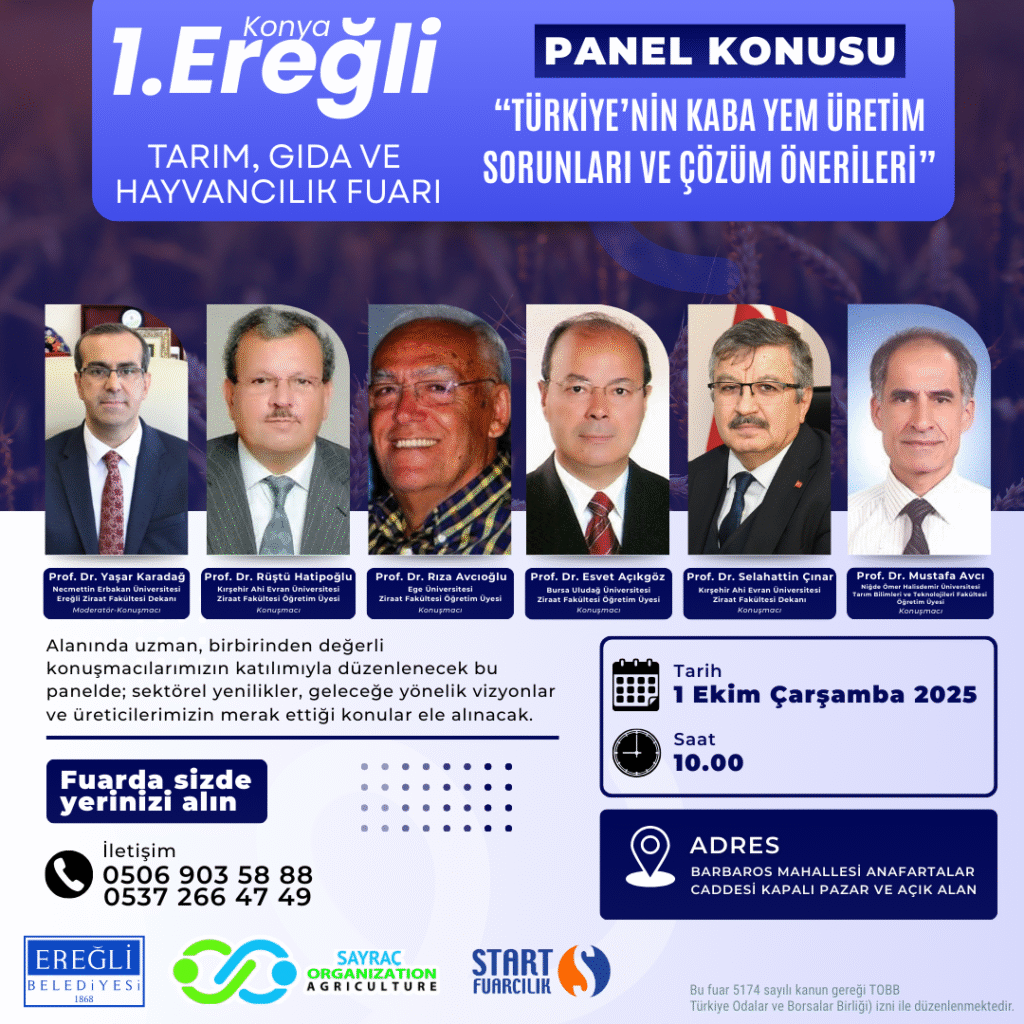 Necmettin Erbakan Üniversitesi Ereğli Ziraat Fakültesi tarafından organize edilen ve “Türkiye’nin Kaba Yem Üretim Sorunları ve Çözüm Önerileri” başlığını taşıyan panel, 1 Ekim Çarşamba günü saat 10.00’da yapılacak.
