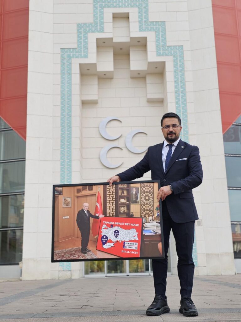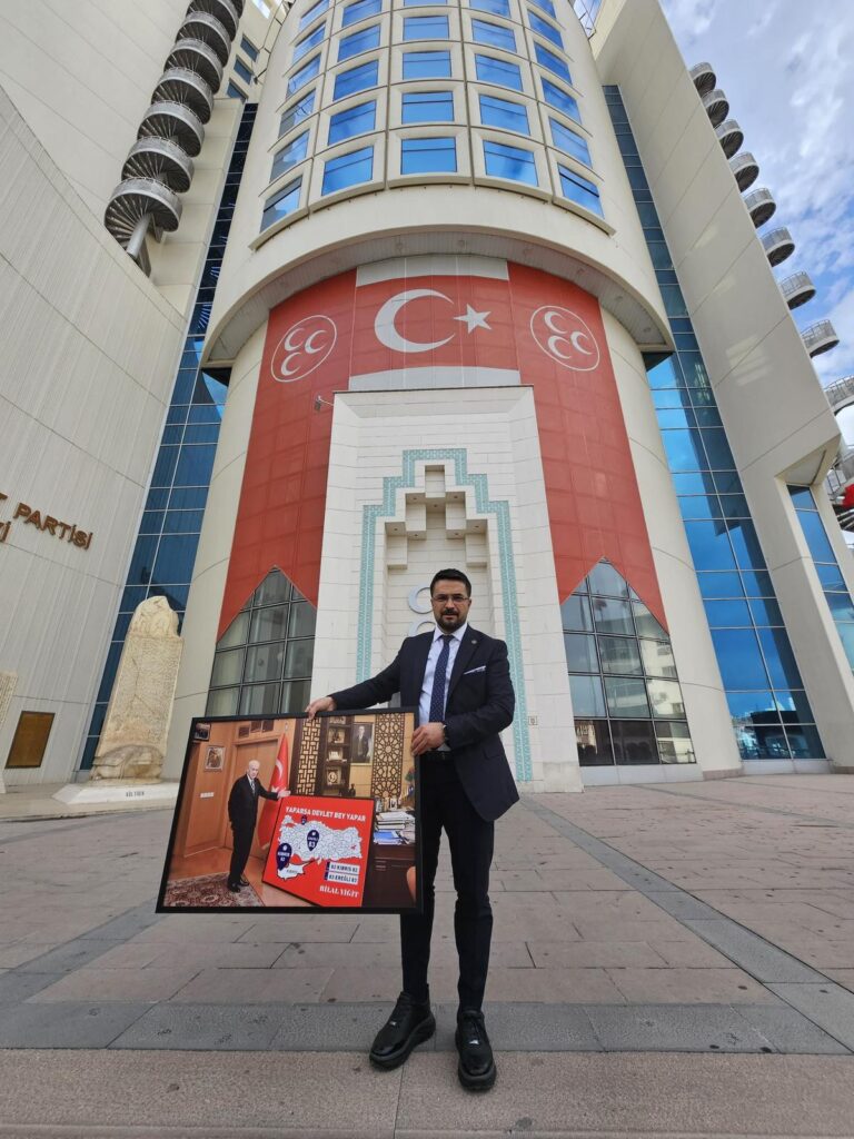 Bu detay, Ereğli’nin il olma talebine güçlü bir gönderme olarak dikkat çekerken, söz konusu tablo MHP Genel Başkanı Devlet Bahçeli’nin daha önce gündeme getirdiği sembolik harita üzerine hazırlanırken, tasarımda kullanılan görselin hem milli birlik mesajı hem de Ereğli’nin il olma vurgusu açısından derin anlam taşıdığı ifade edildi.