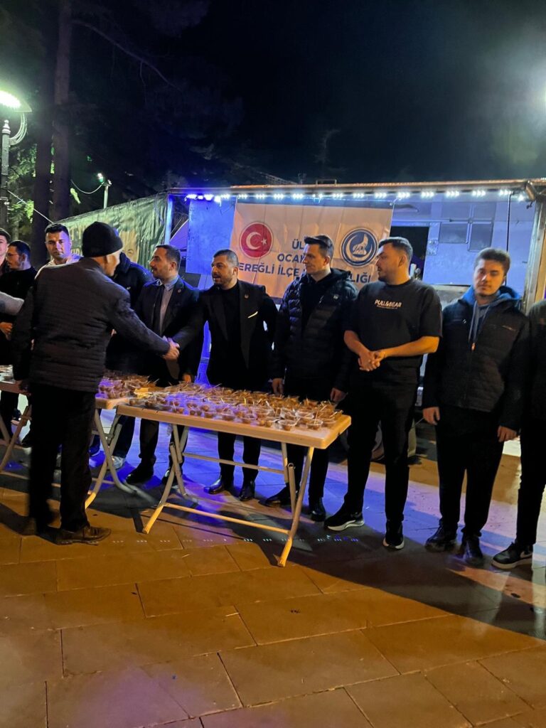 Ülkü Ocakları Ereğli İlçe Başkanı Lütfi Tekeli’nin öncülüğünde düzenlenen programa, TÜRKAV Ereğli Şube Başkanı Semih Özdem’in yanı sıra teşkilat mensupları ve çok sayıda vatandaş katıldı. Cami önünde kurulan stantta vatandaşlara lokma ikram edildi.