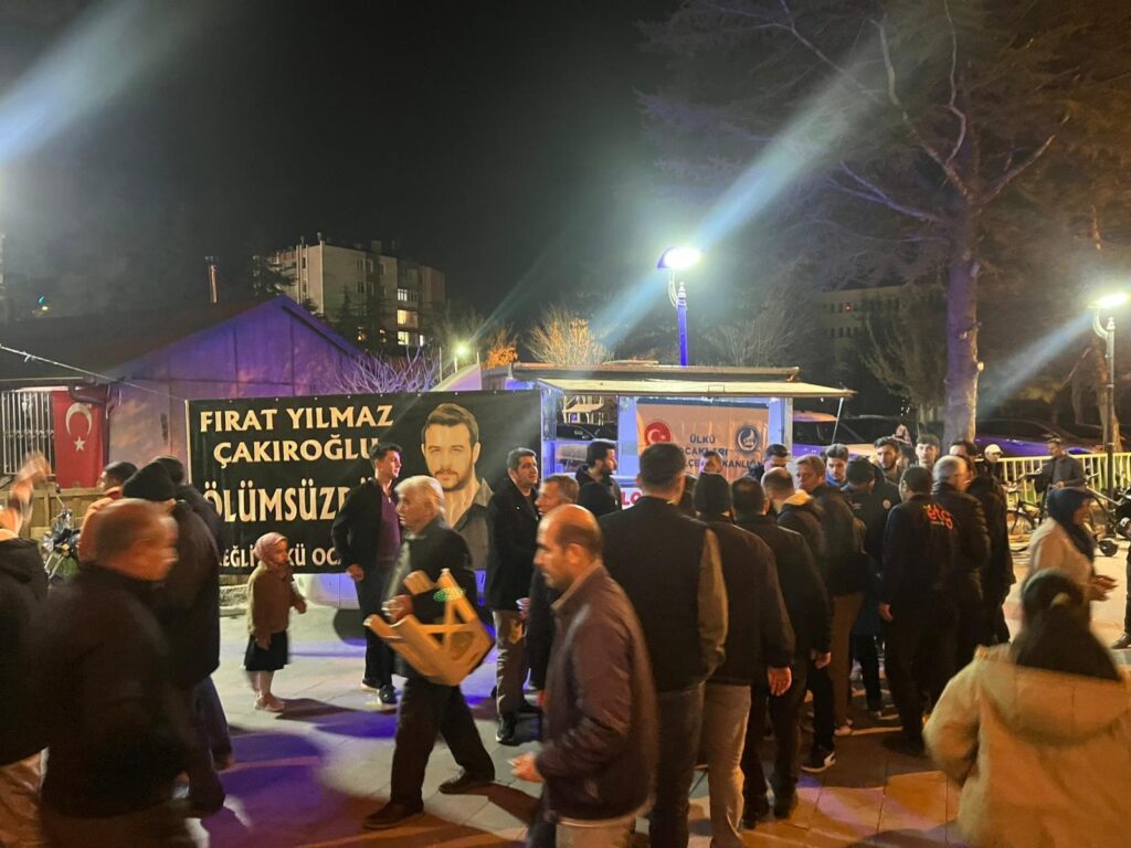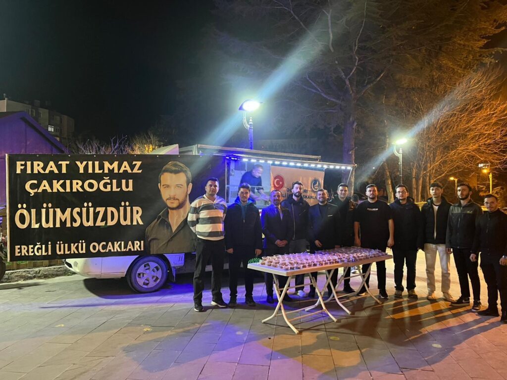 Ülkü Ocakları Ereğli İlçe Başkanlığı tarafından, Ülkücü Şehit Fırat Yılmaz Çakıroğlu’nun şehadetinin sene-i devriyesi dolayısıyla Uğurlu Cami önünde lokma ikramı programı gerçekleştirildi.