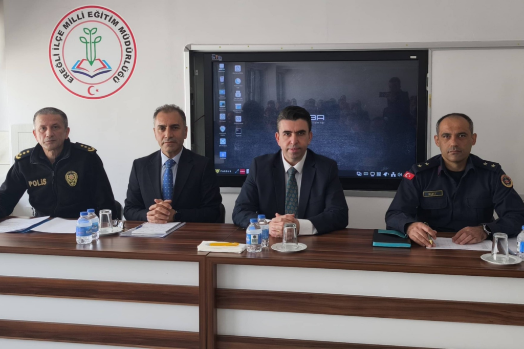Ereğli’de eğitim kurumlarının huzur ve güvenliğini en üst seviyede tutmak amacıyla kapsamlı bir “Okul Güvenliği Toplantısı” gerçekleştirildi. Ereğli Kaymakamı Murat Eren başkanlığında düzenlenen toplantıda, öğrencilerin güvenli bir ortamda eğitim alabilmeleri için alınacak önlemler detaylandırıldı.