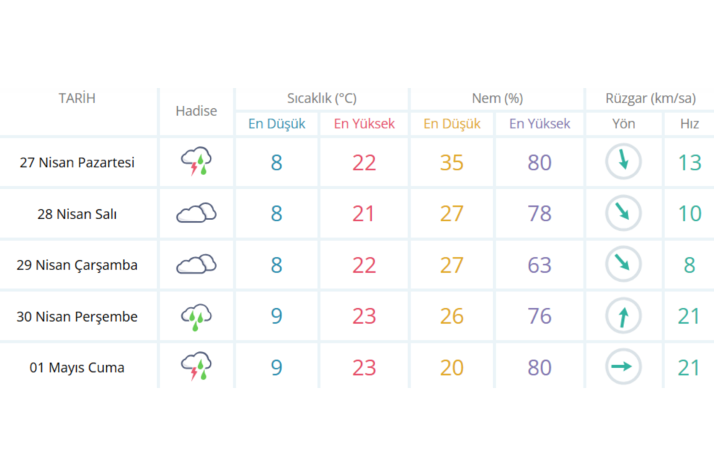 30 Nisan Perşembe: Sağanak Yağmurlu ve Rüzgarlı, 23 derece