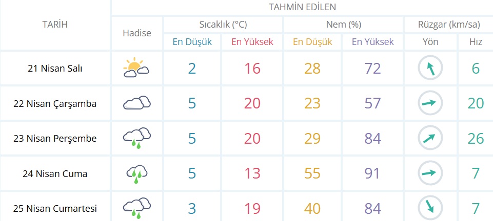 21 Nisan Salı: Az Bulutlu, 16 derece