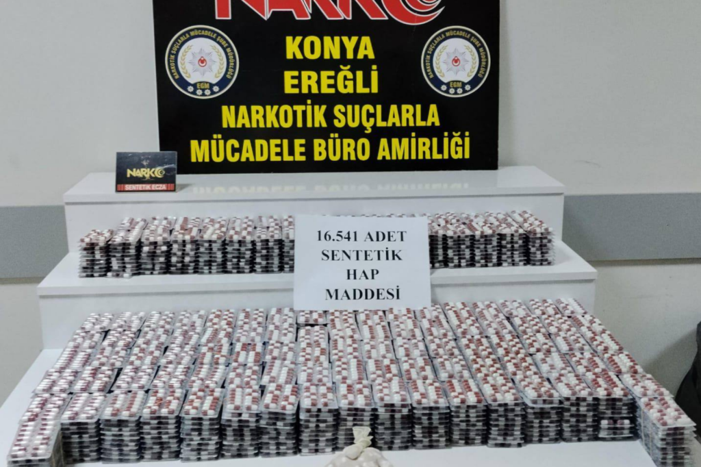 Ereğli’de narkotik ekiplerinin Adana–Konya hattında yürüttüğü operasyon, uyuşturucuyla mücadelede önemli bir başarıyla sonuçlandı. Operasyonda 16 bin 541 adet sentetik hap ele geçirilirken, 3 şüpheli tutuklandı, 1 firariyi yakalama çalışmaları ise sürüyor.