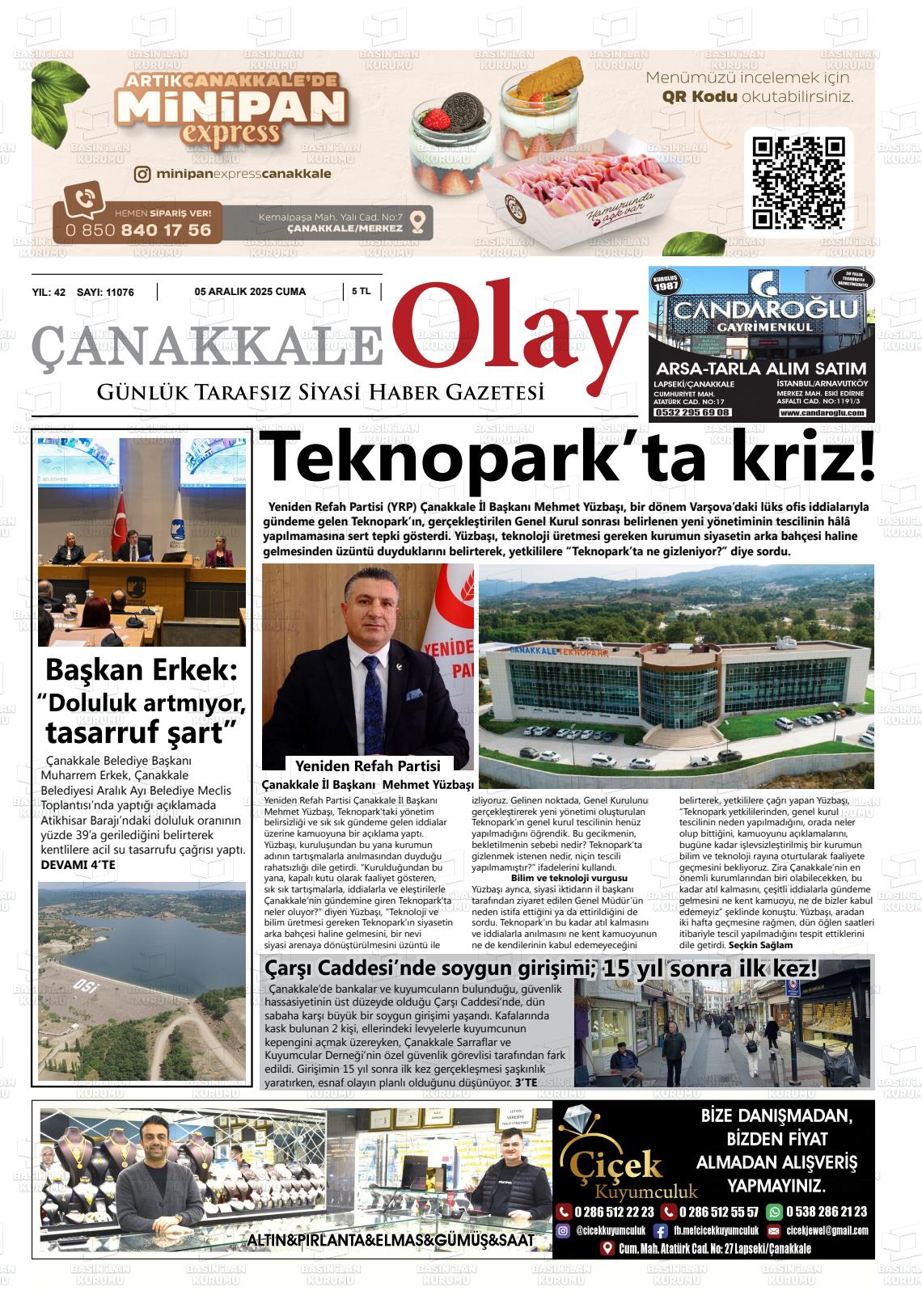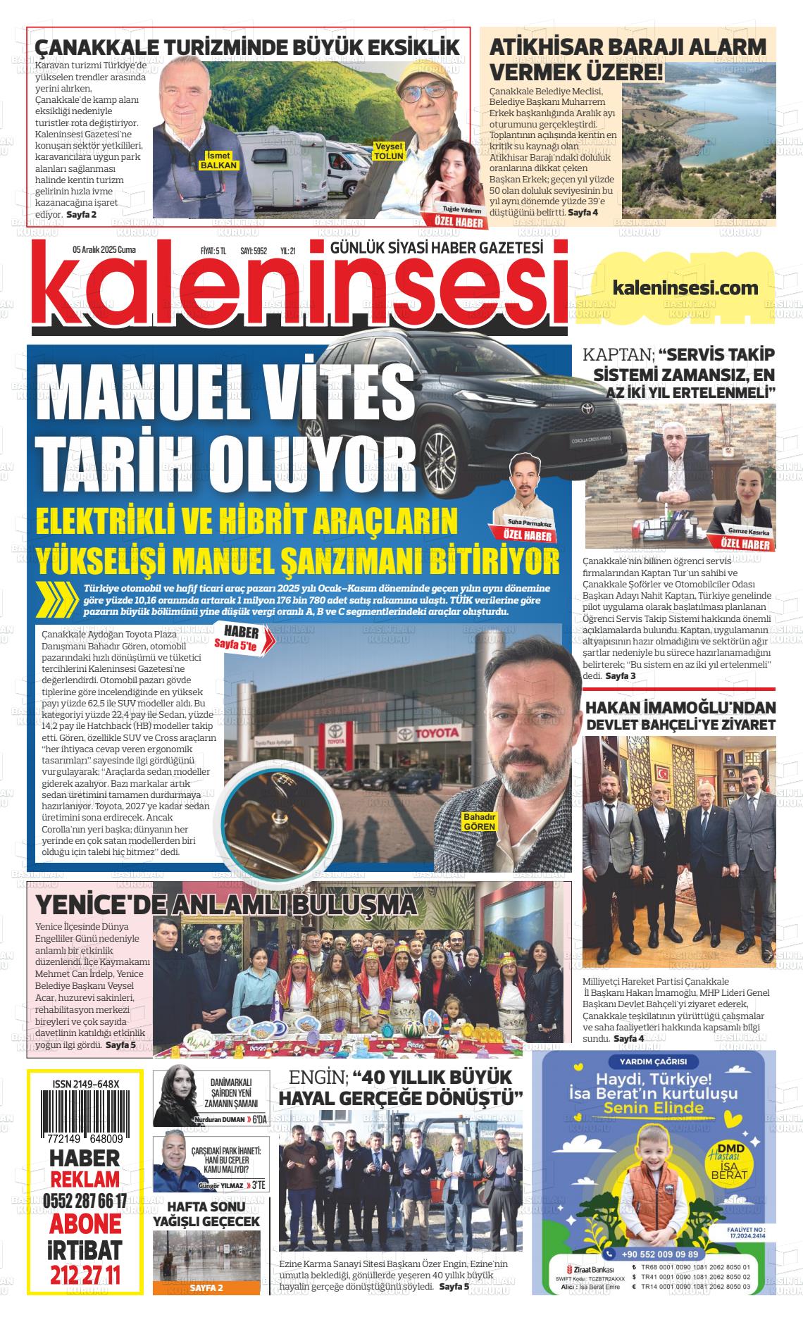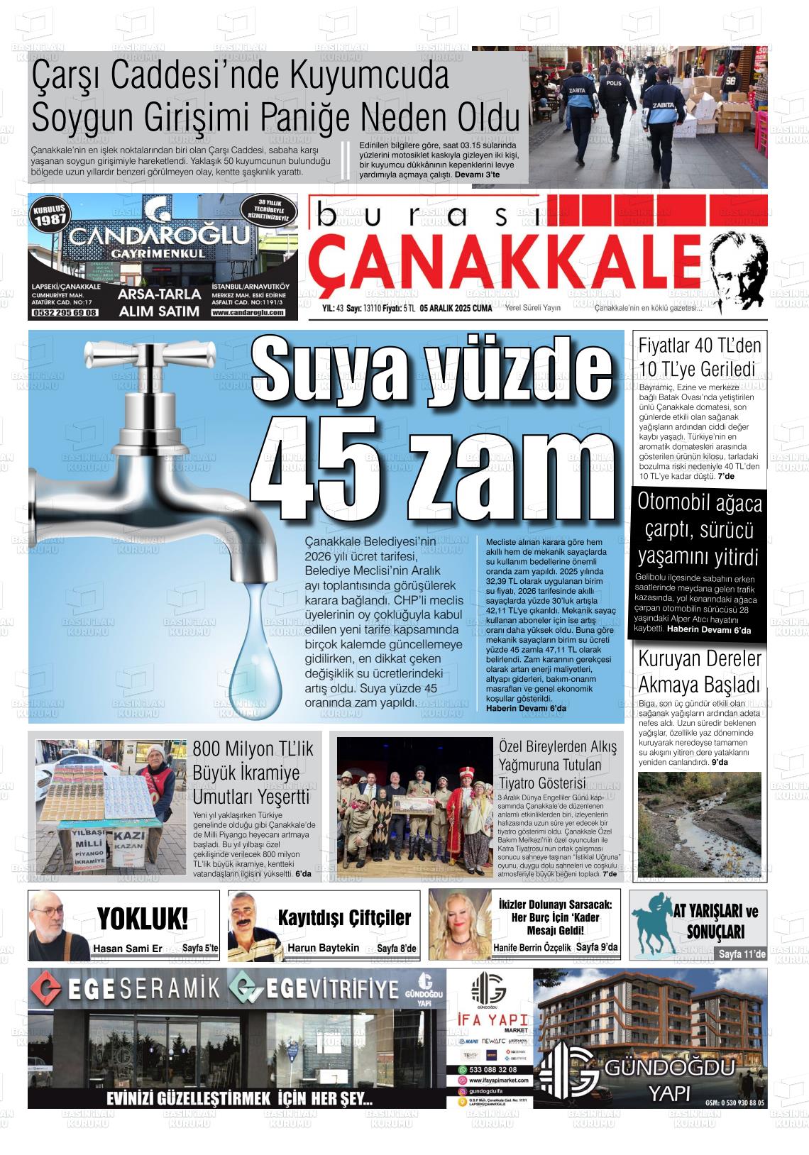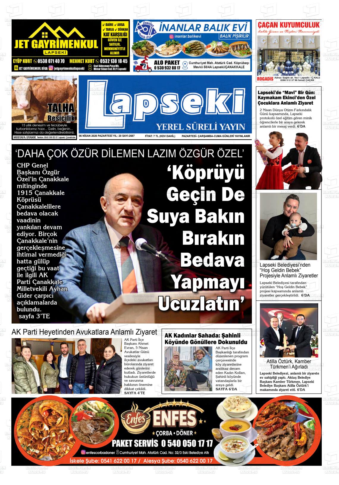 Çanakkale Yerel Gazeteleri 06 Nisan 2026, Pazartesi Günü Manşeti