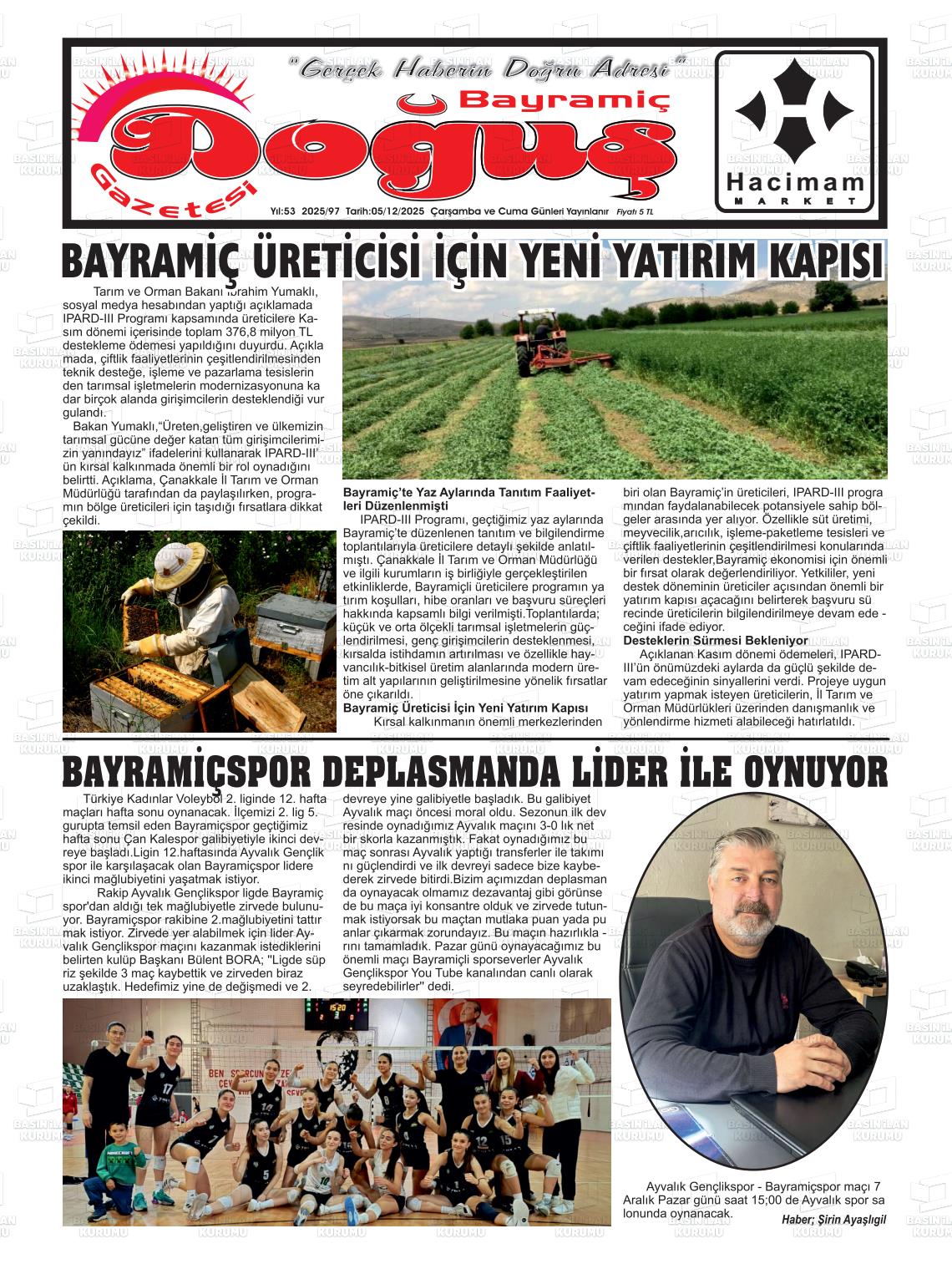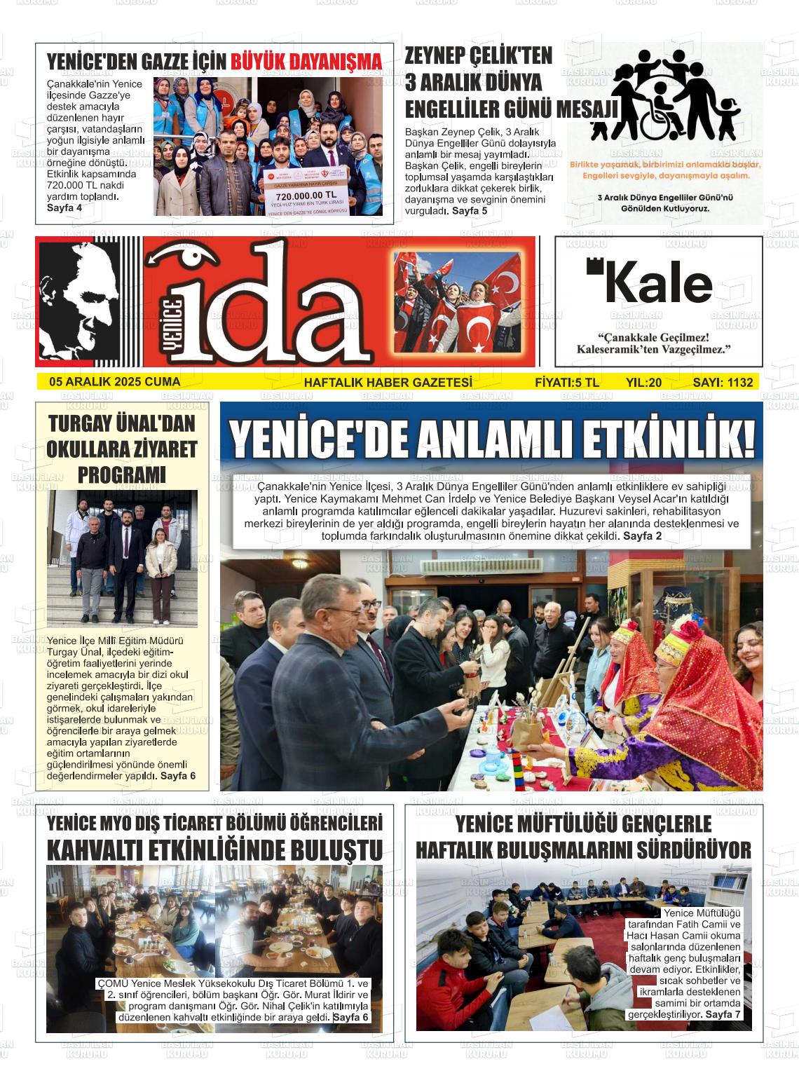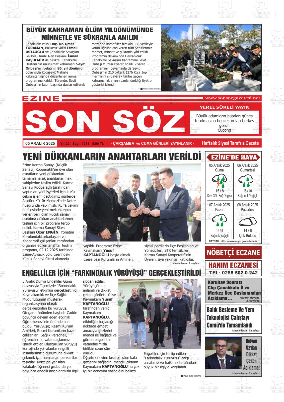 Çanakkale Yerel Gazeteleri 05 Aralık 2025, Cuma Günü Manşeti