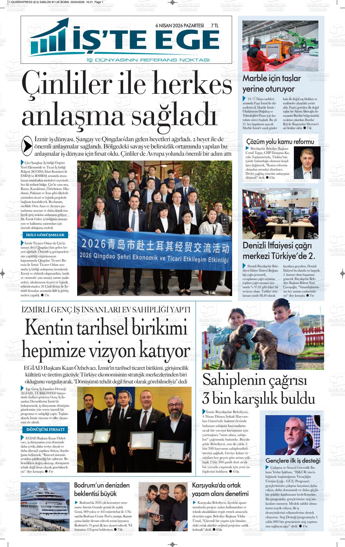 İzmİr Yerel Gazeteleri 06 Nisan 2026, Pazartesi Günü Manşeti