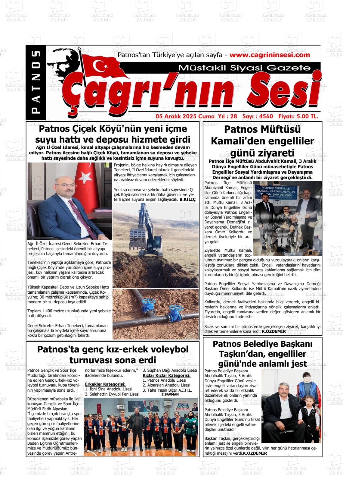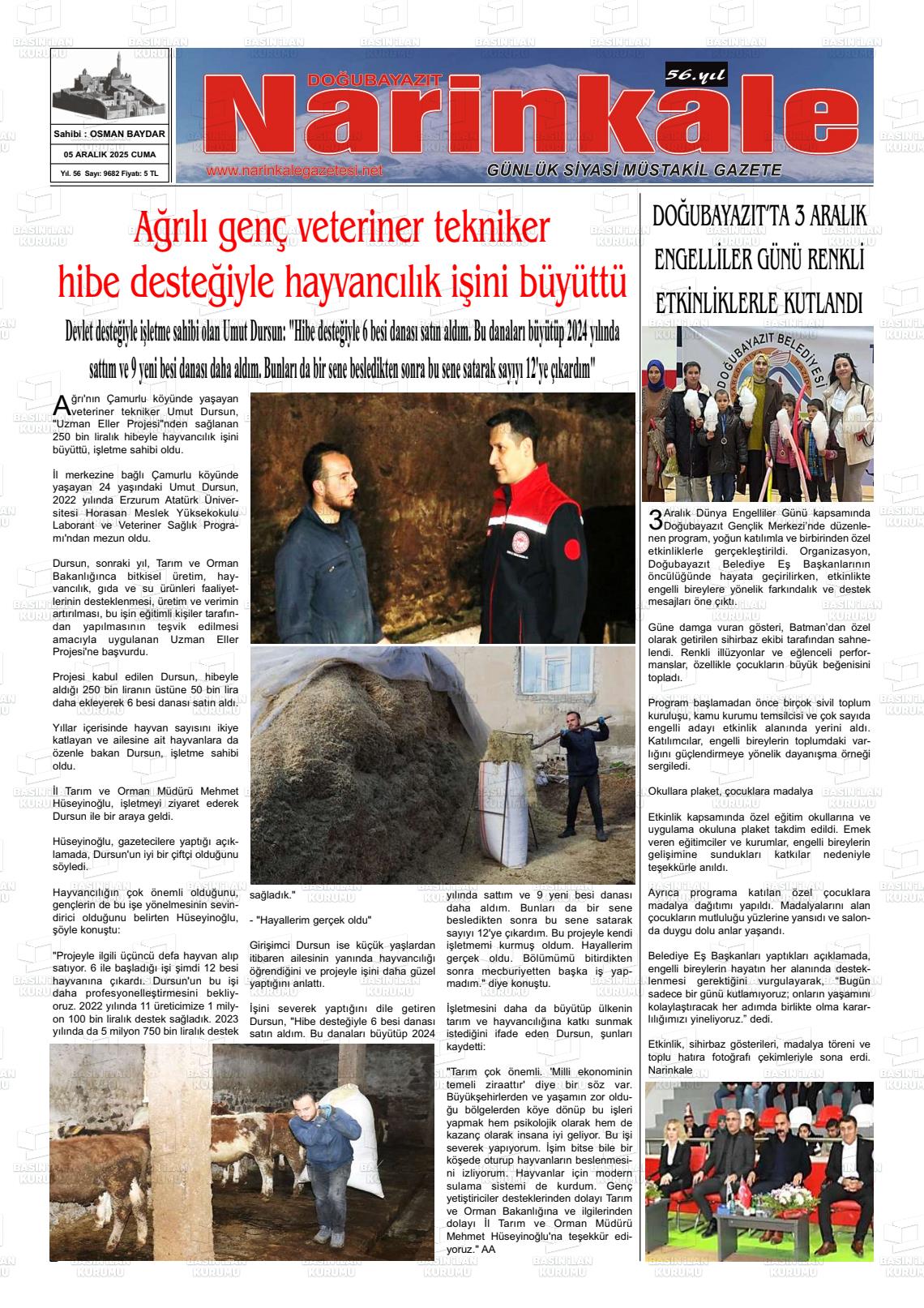 Ağrı Yerel Gazeteleri 05 Aralık 2025, Cuma Günü Manşeti