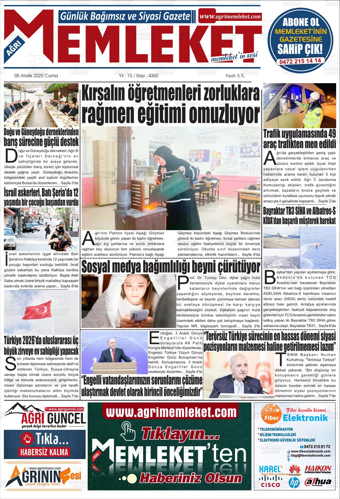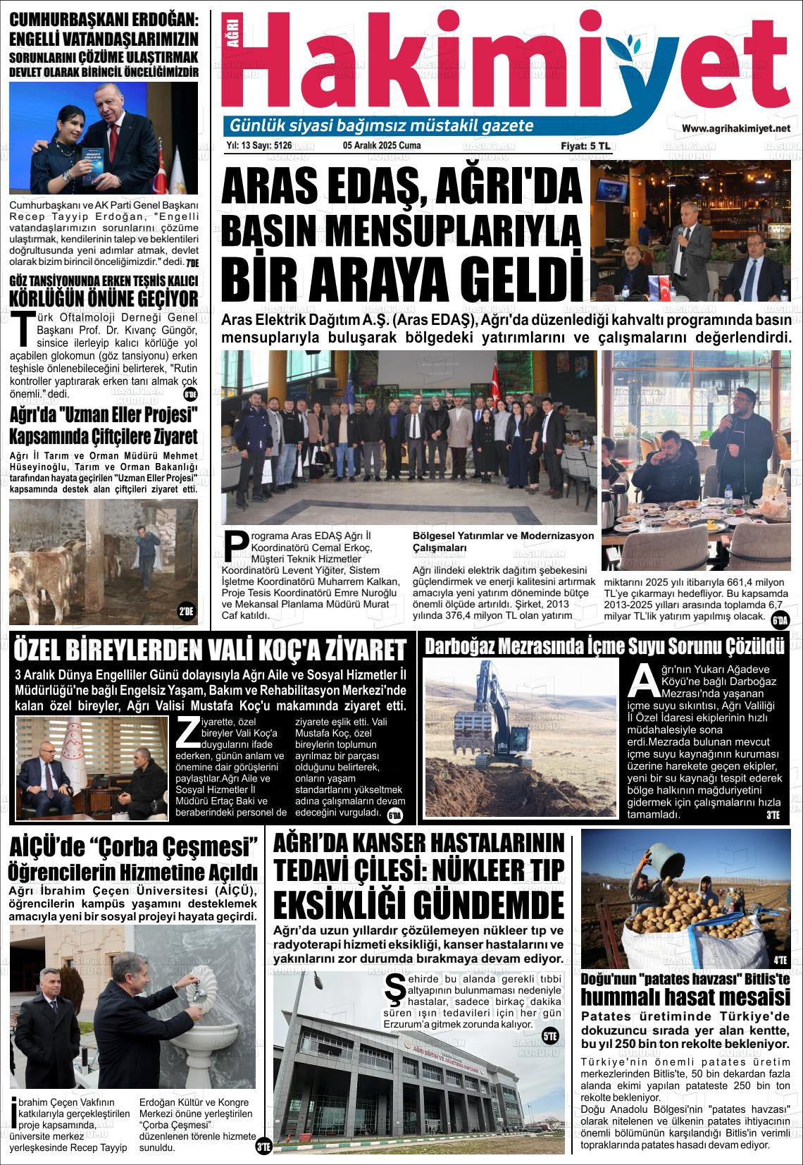 Ağrı Yerel Gazeteleri 06 Nisan 2026, Pazartesi Günü Manşeti