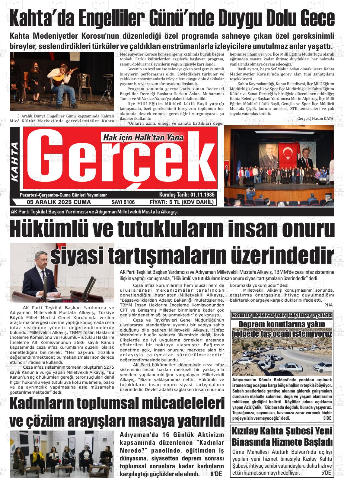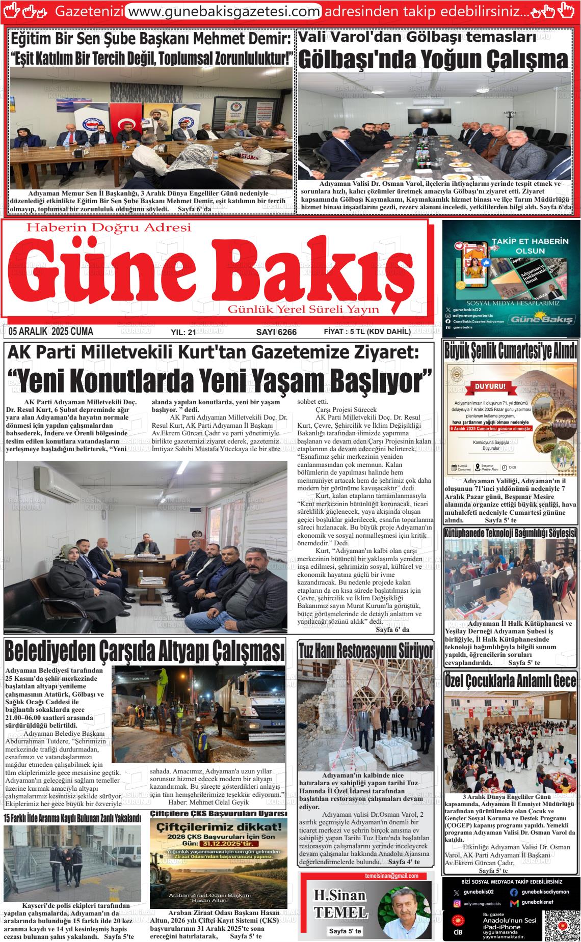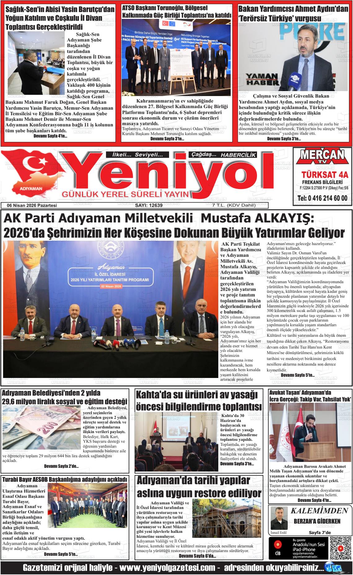 Adıyaman Yerel Gazeteleri 06 Nisan 2026, Pazartesi Günü Manşeti