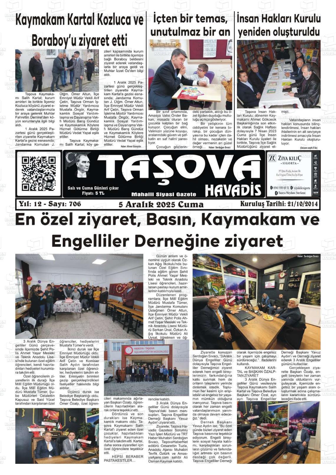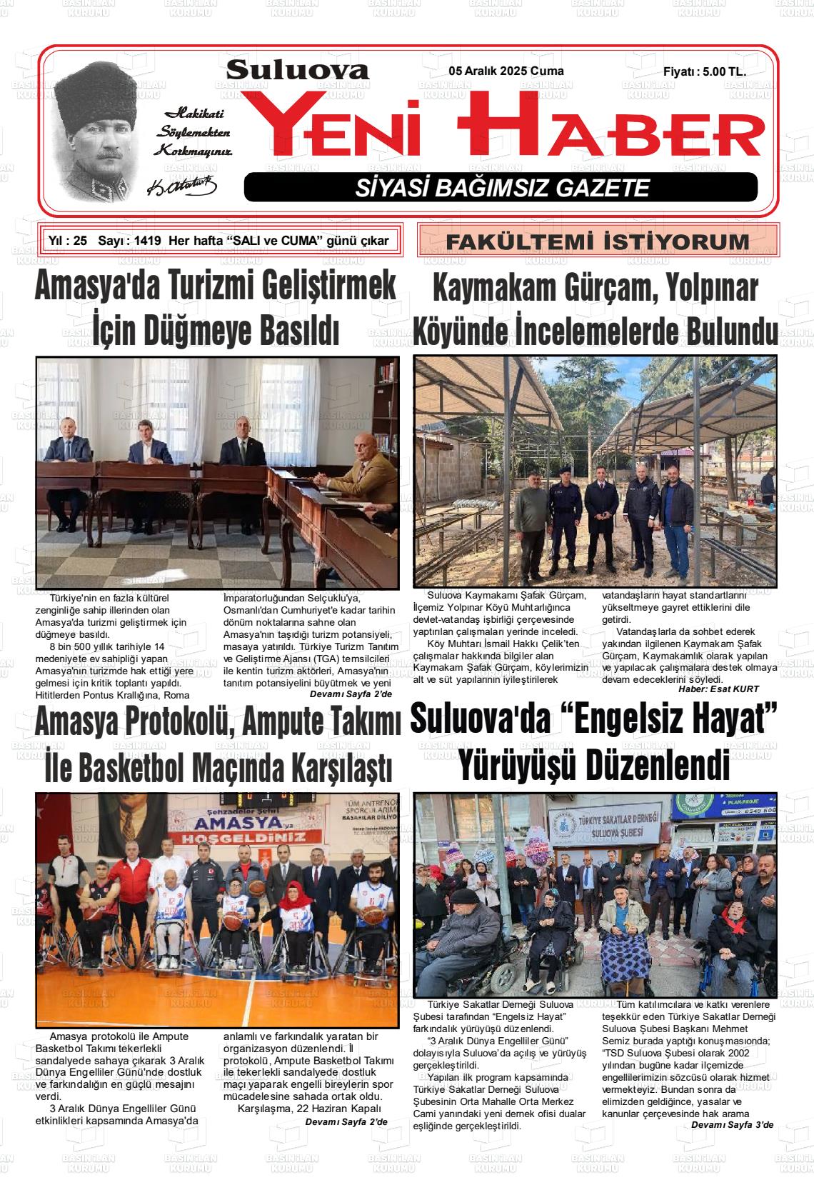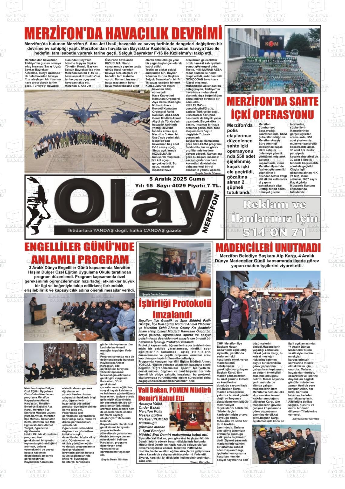 Amasya Yerel Gazeteleri 05 Aralık 2025, Cuma Günü Manşeti