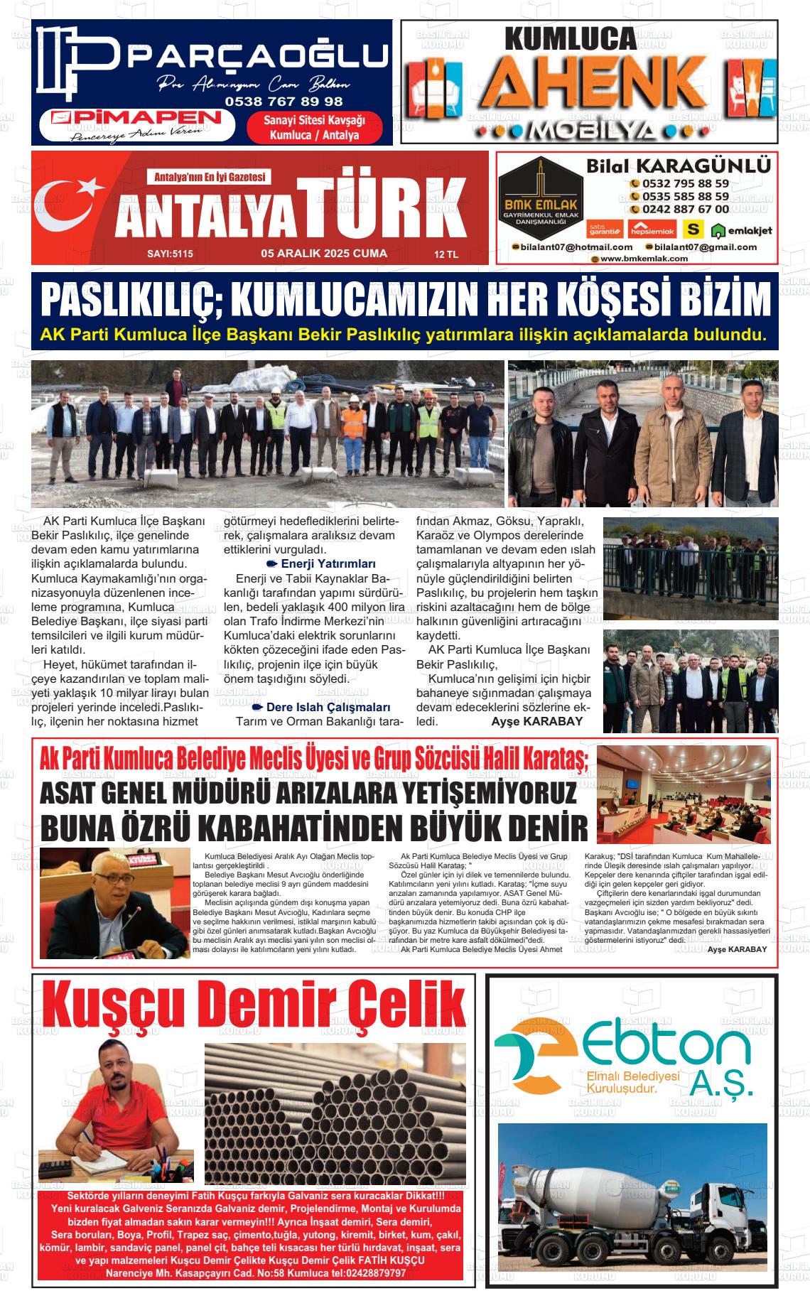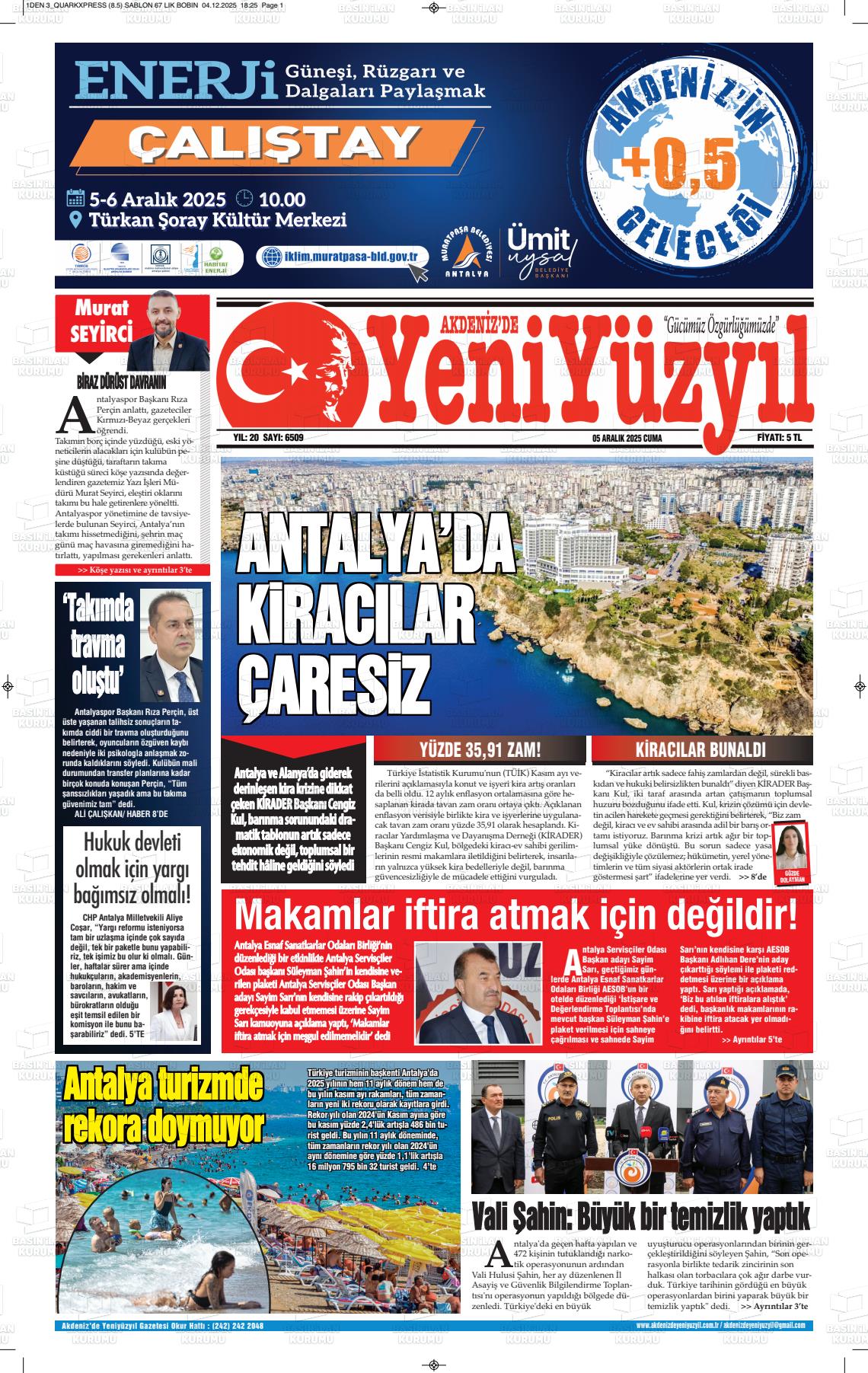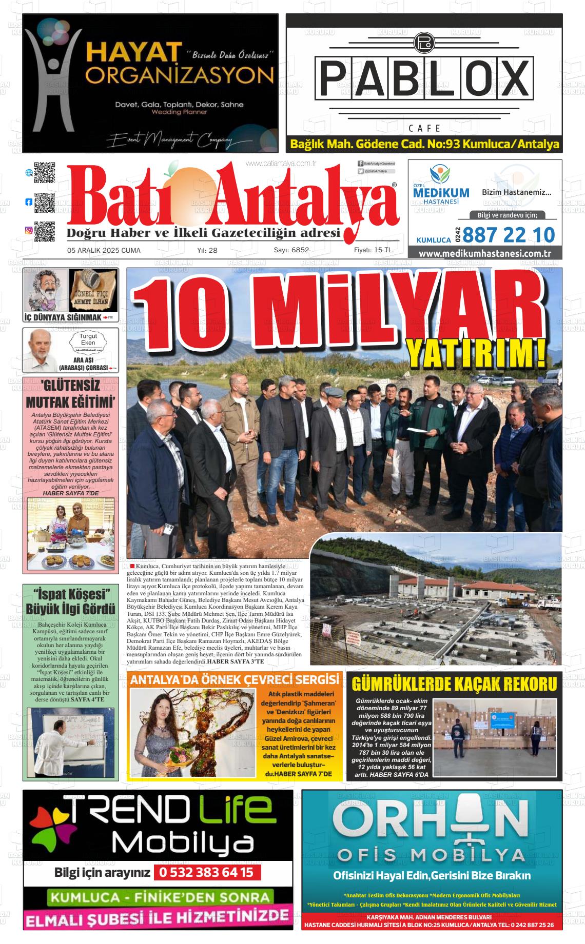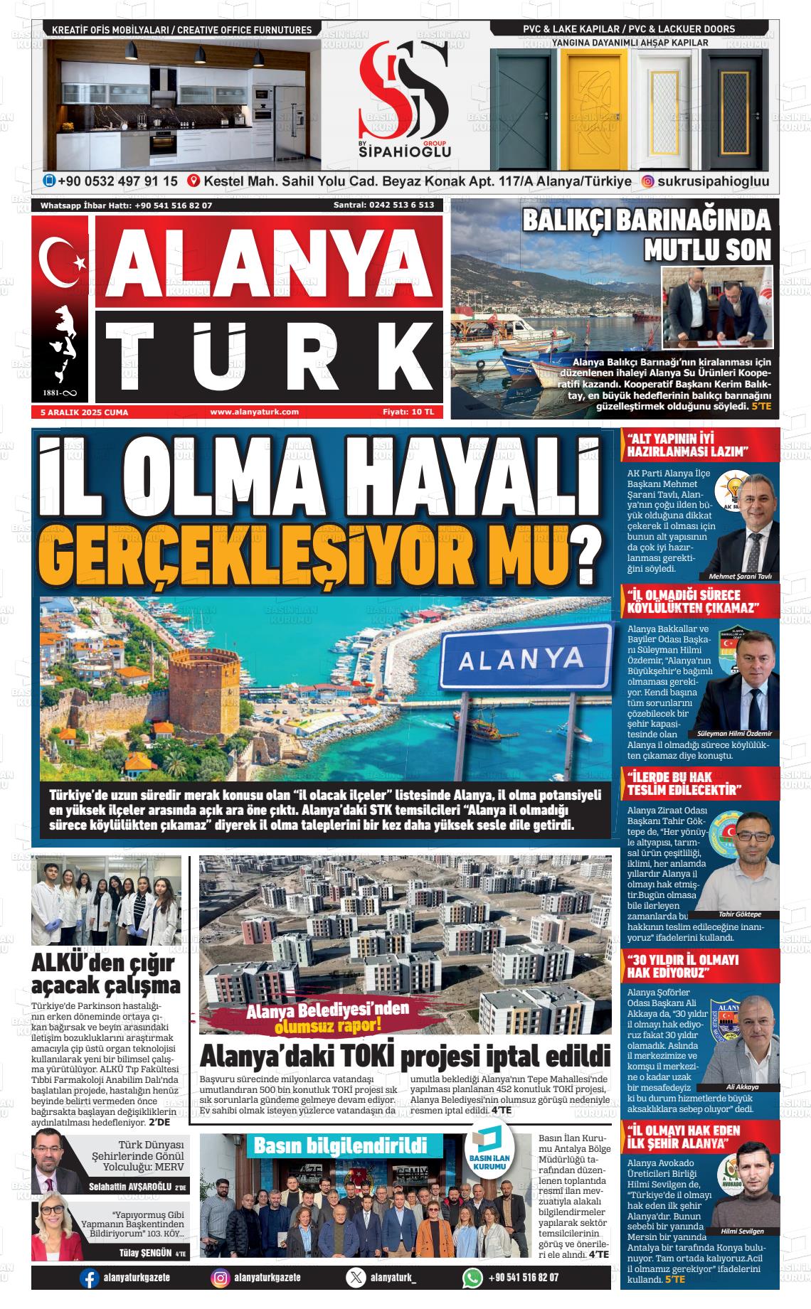 Antalya Yerel Gazeteleri 06 Nisan 2026, Pazartesi Günü Manşeti