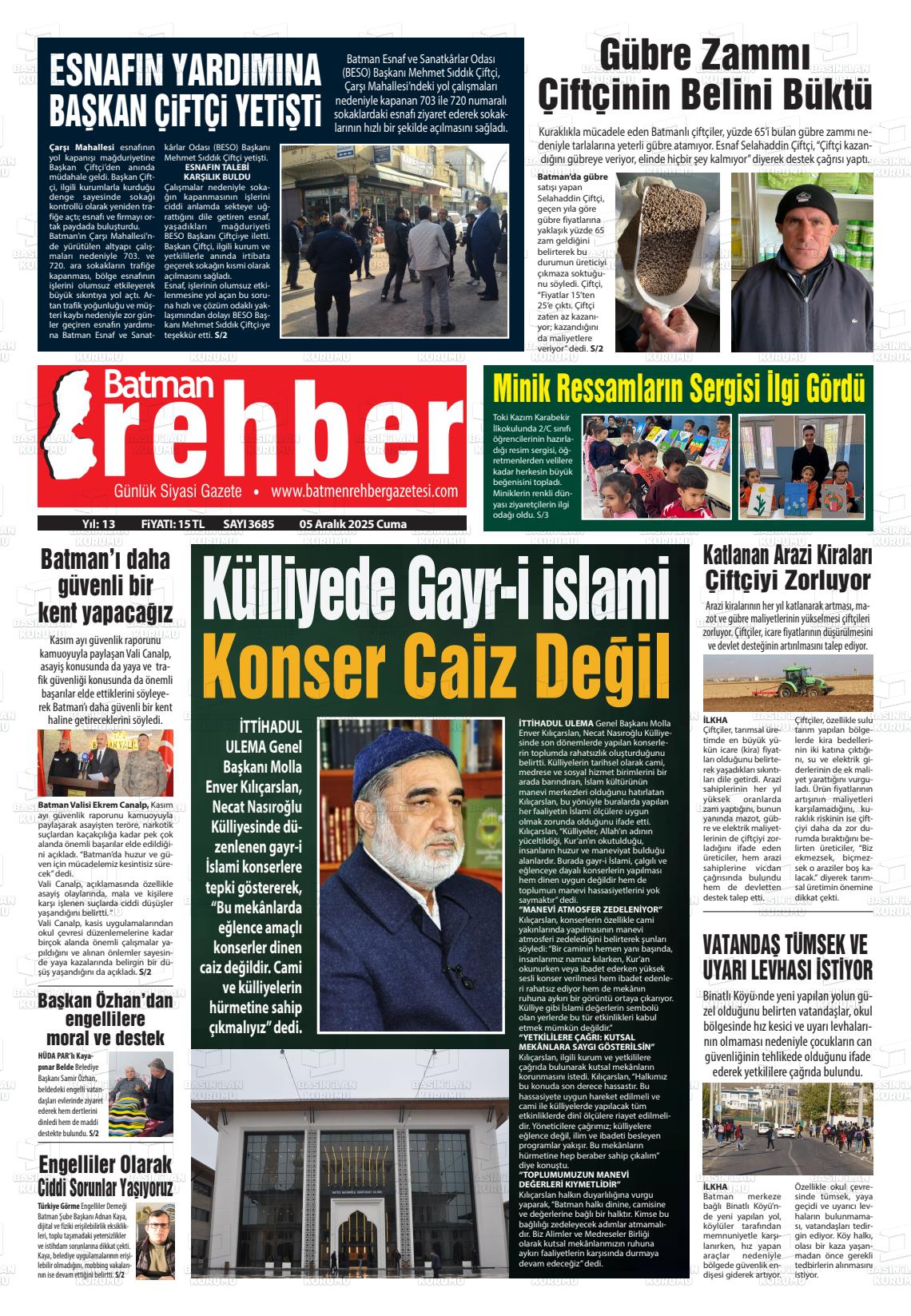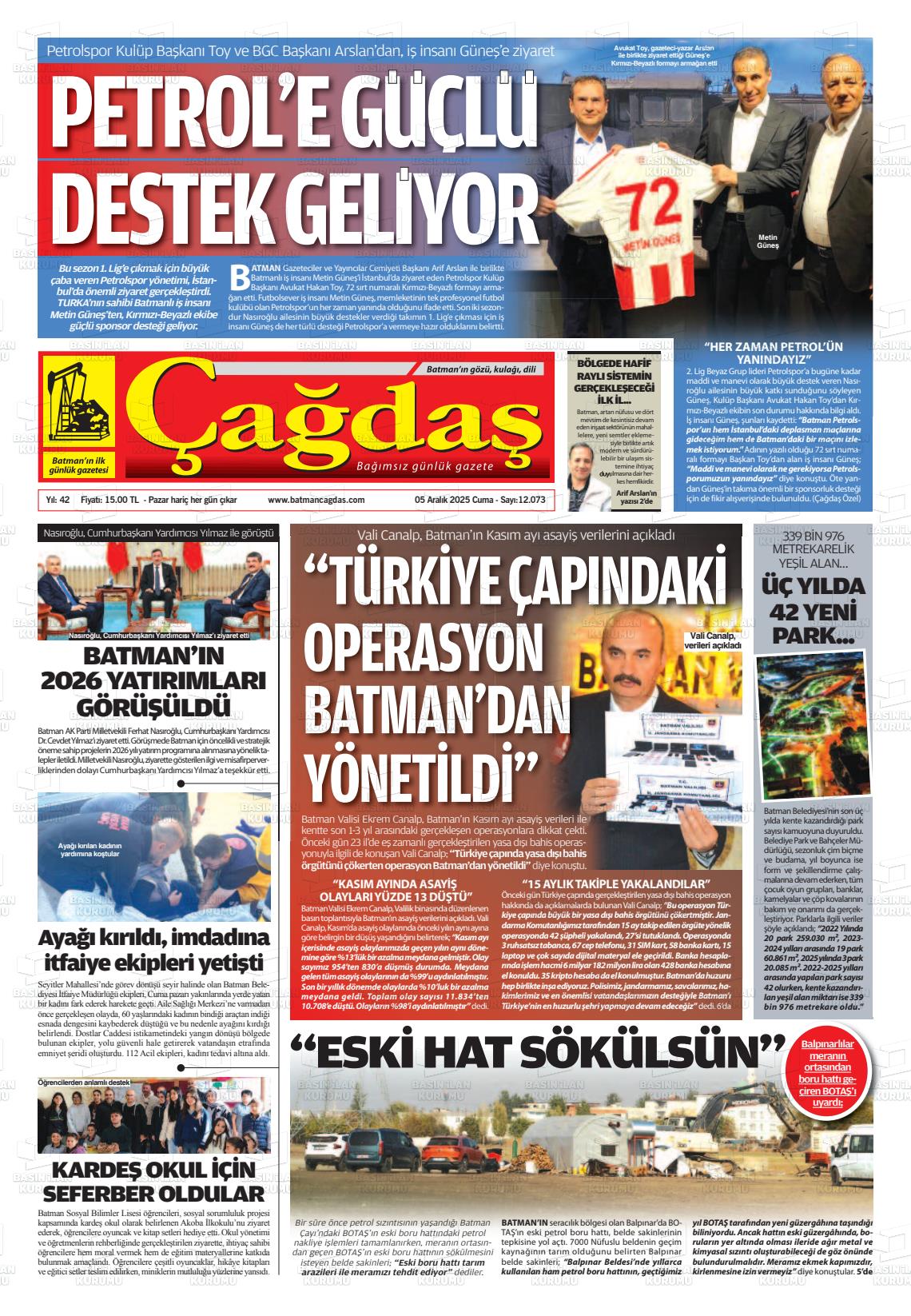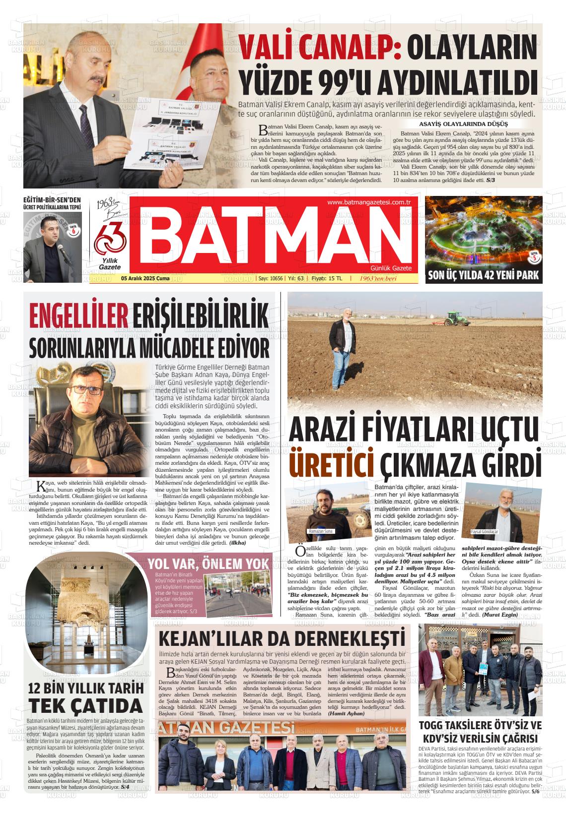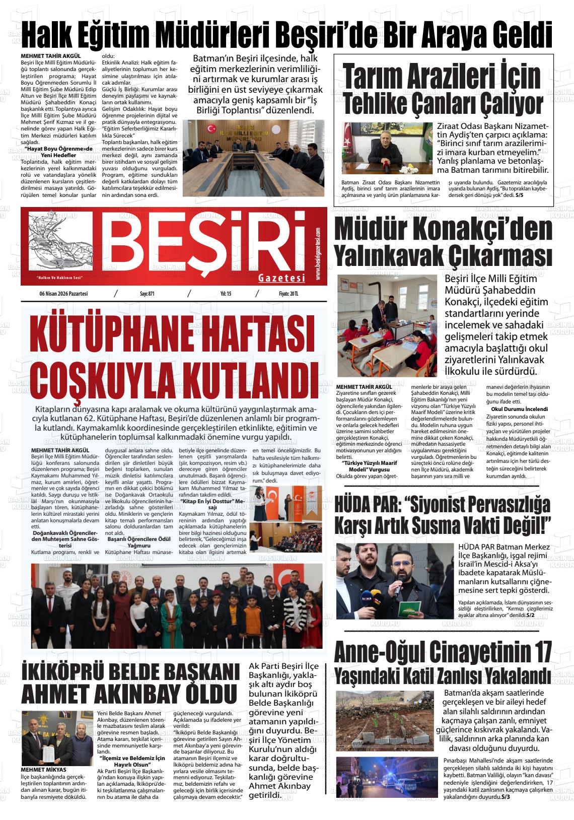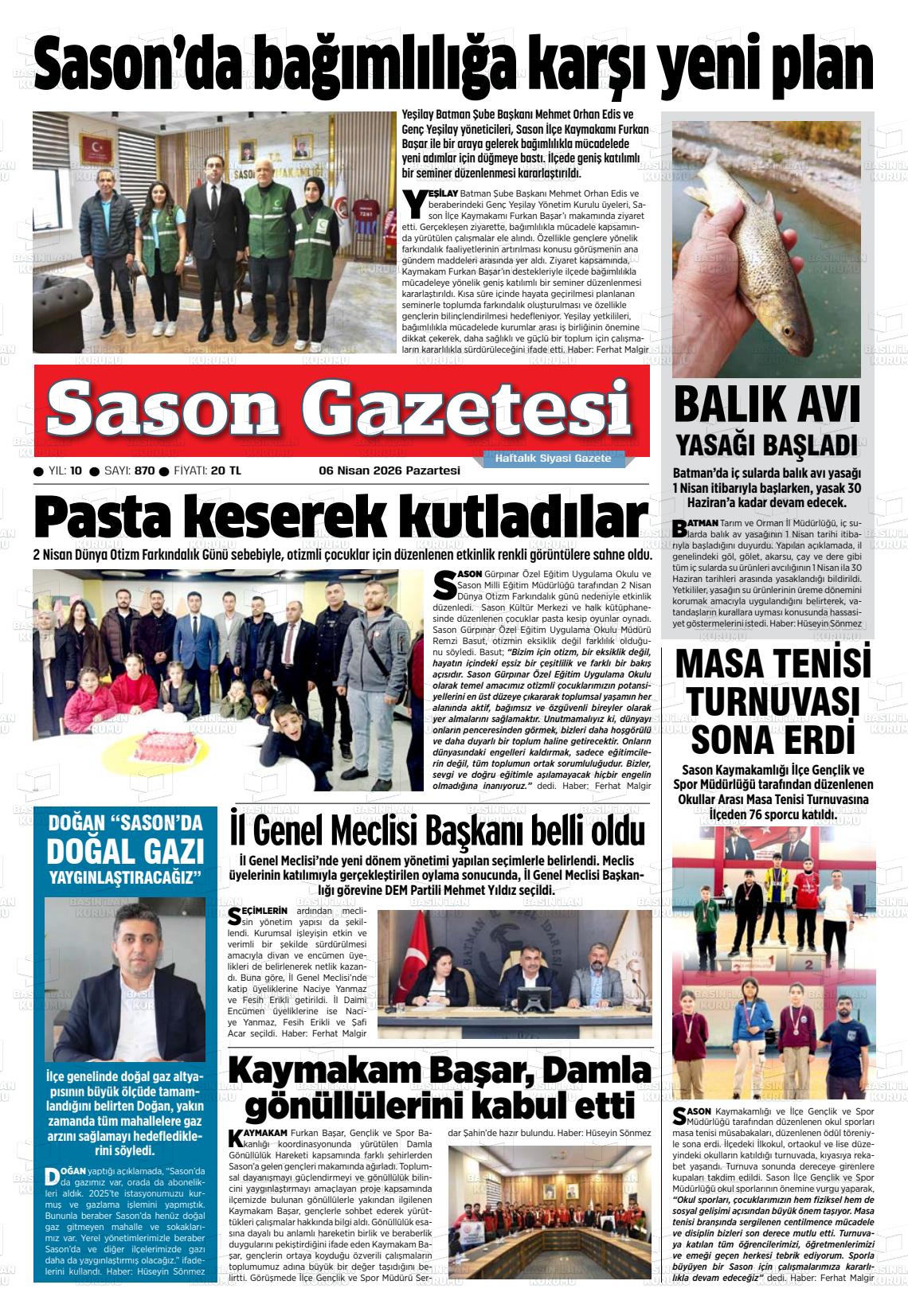Batman Yerel Gazeteleri 06 Nisan 2026, Pazartesi Günü Manşeti
