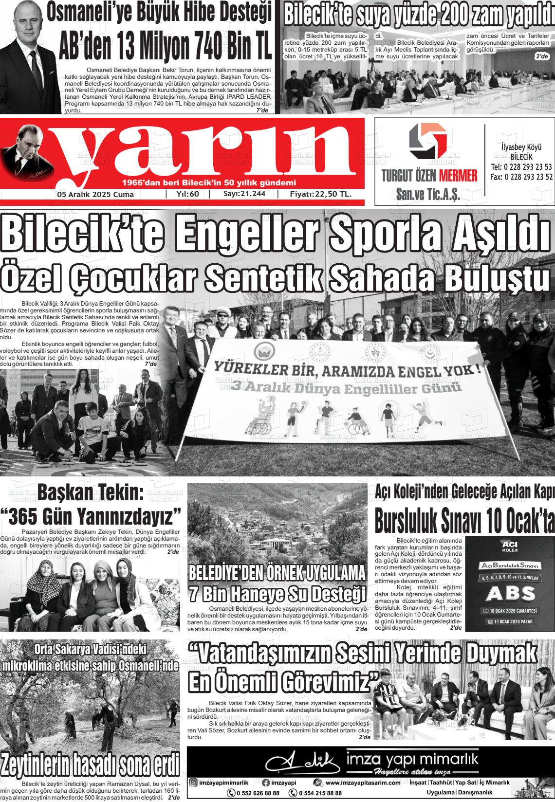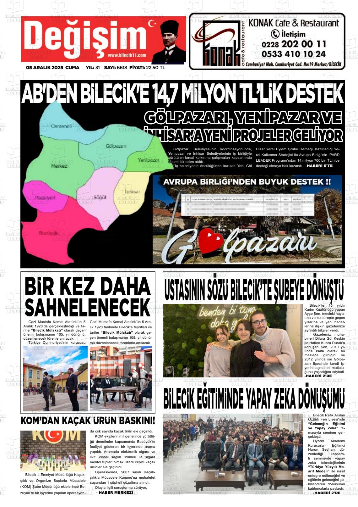 Bİlecİk Yerel Gazeteleri 05 Aralık 2025, Cuma Günü Manşeti