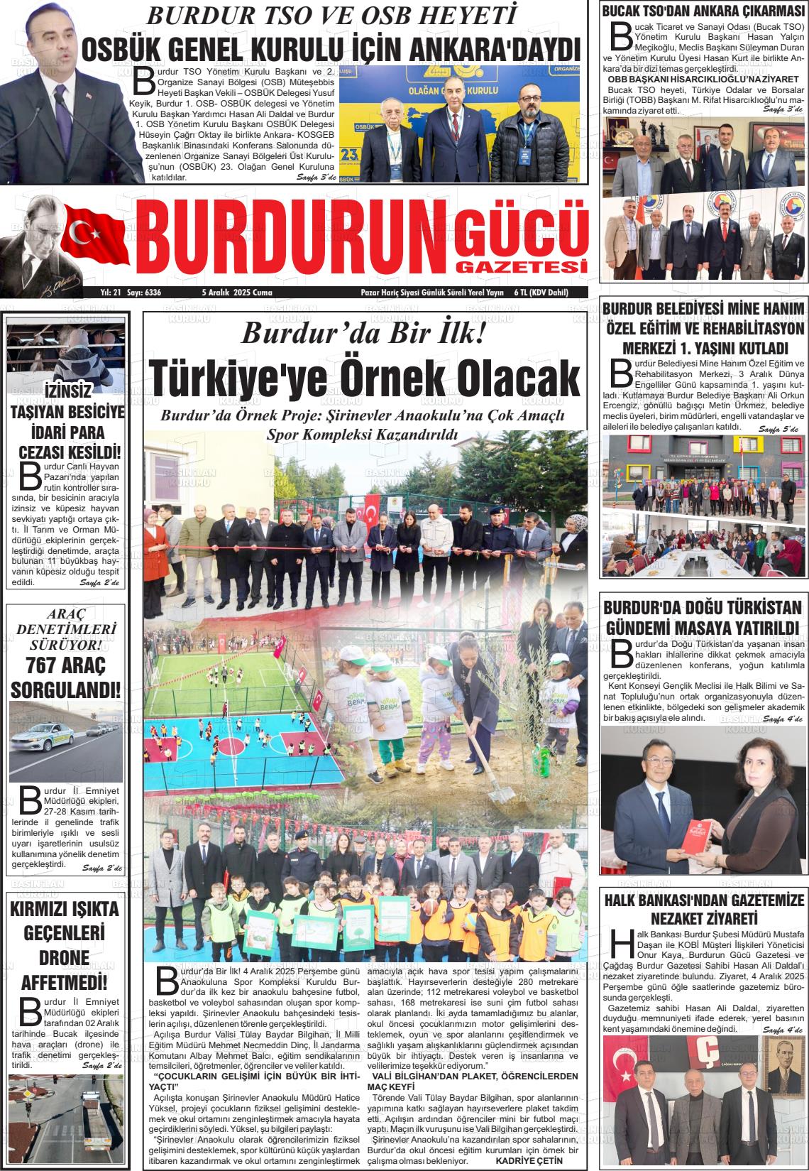 Burdur Yerel Gazeteleri 06 Nisan 2026, Pazartesi Günü Manşeti
